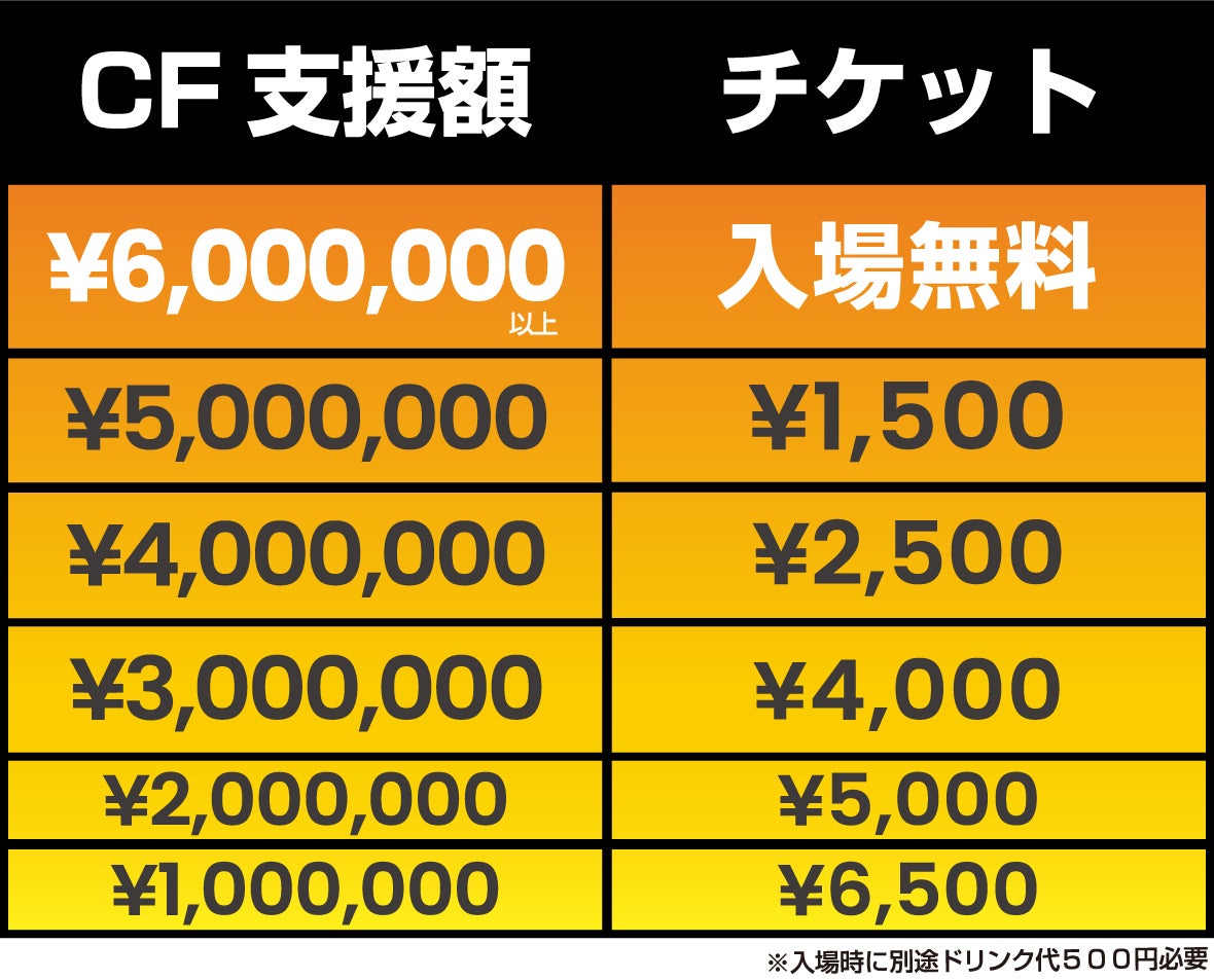 CF支援額が目標金額を超えた場合、入場無料となります。