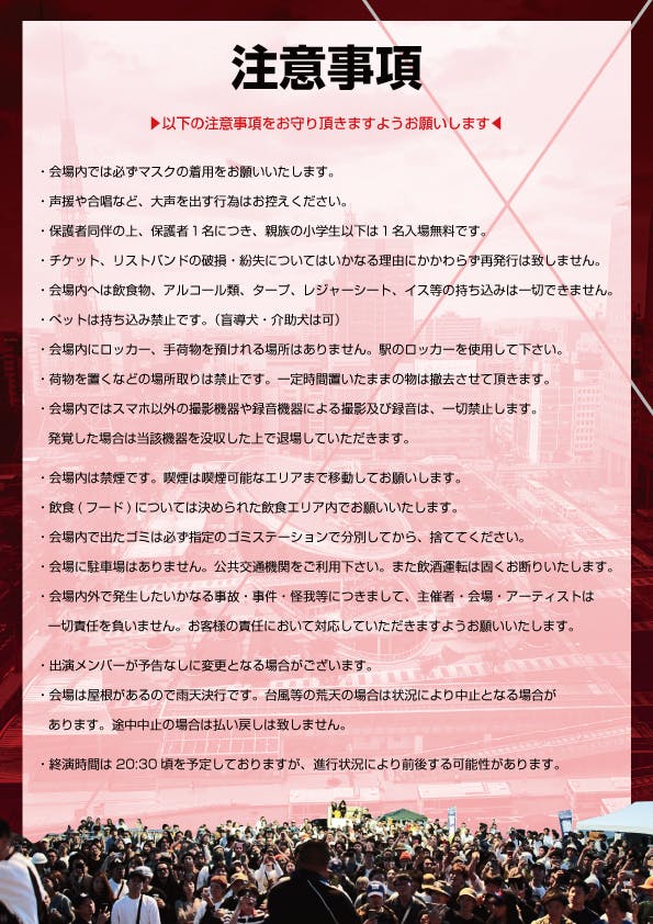 ご来場の際は必ず内容を確認して頂き、ご理解、ご協力宜しくお願い致します。