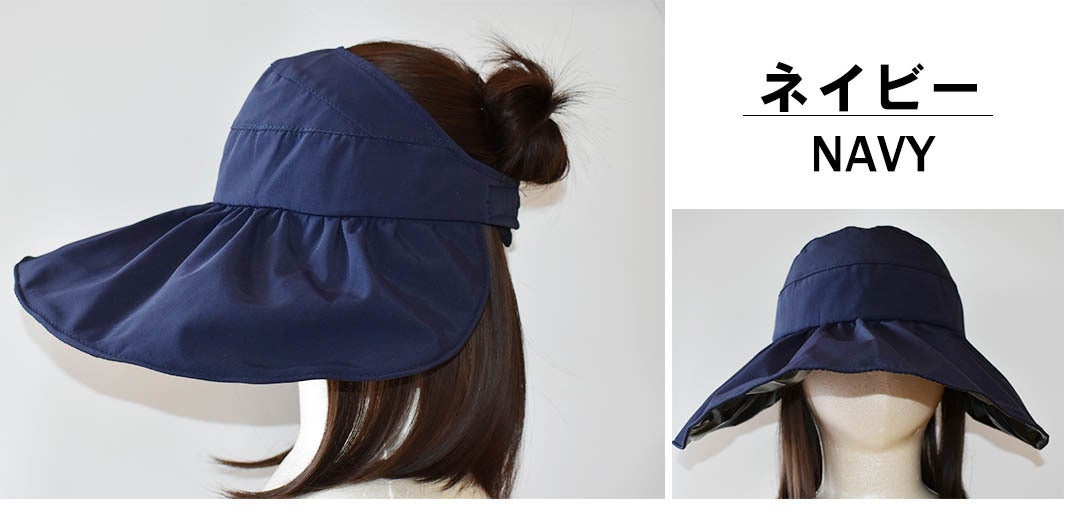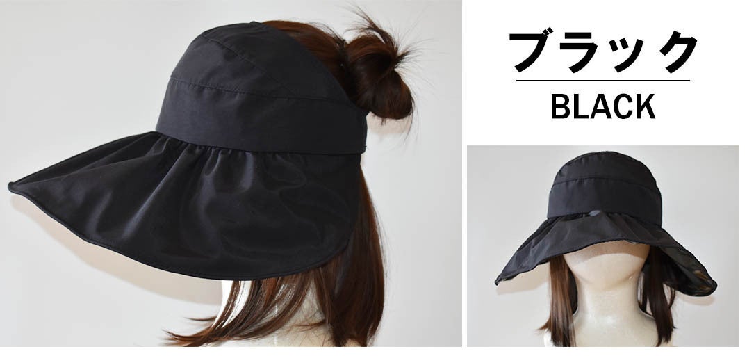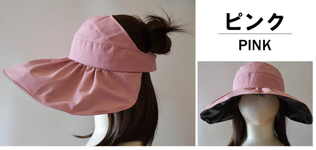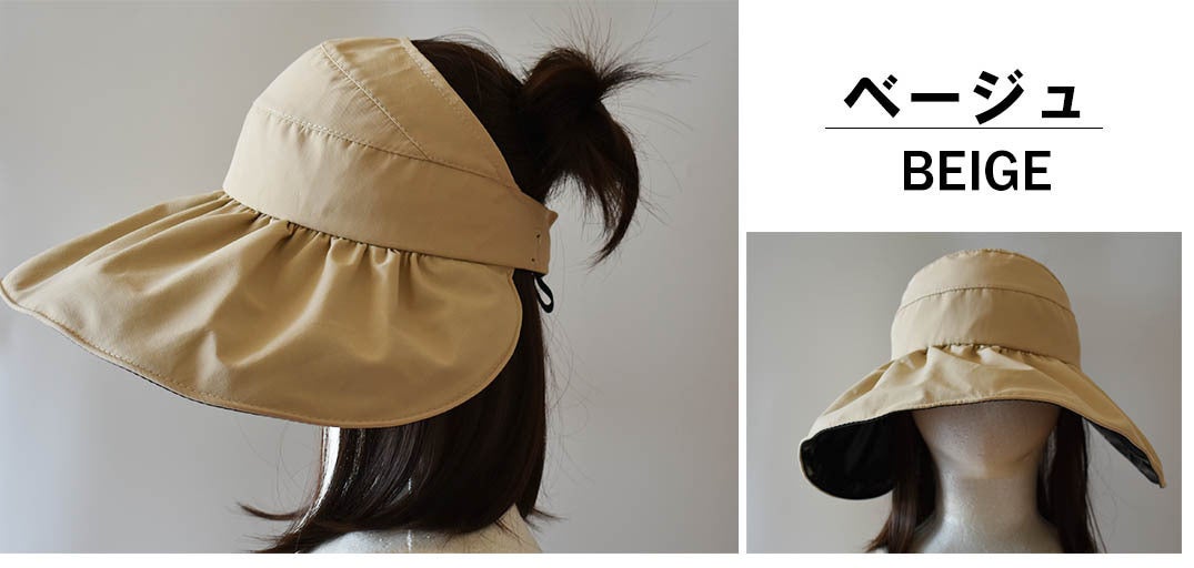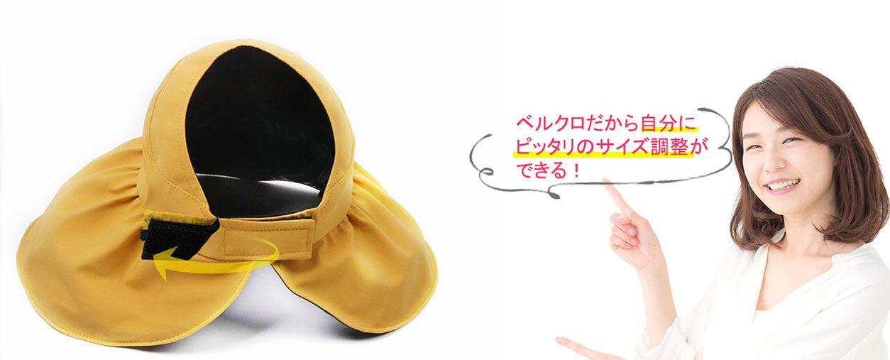 「日傘みたいなつば広ハット」はバイザータイプなので自分の頭囲にジャストサイズで調整可能。