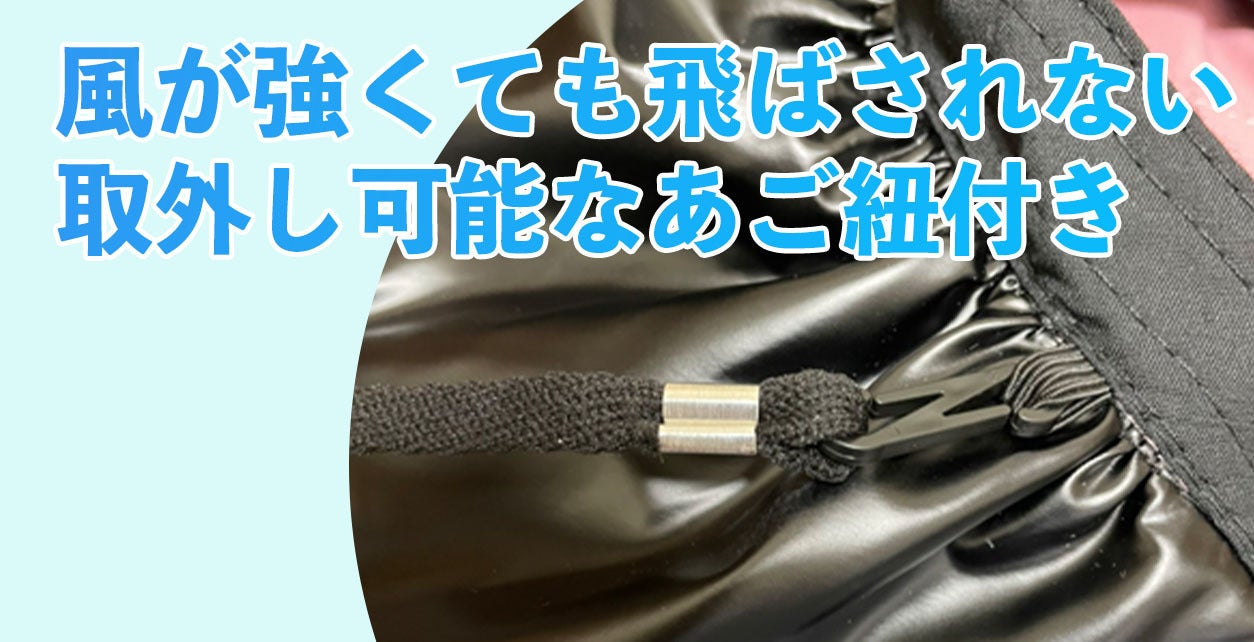 調節あご紐が付いているので、風が強くても安心。運動会などでも大活躍♪