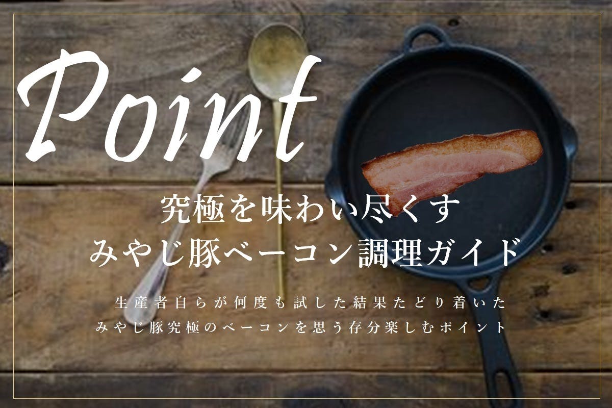 やっとの思いで完成した「みやじ豚究極のベーコン」だからこそ、皆様に味わい尽くして欲しいと思い、事前に製造元であるエーデルワイスファームさんのベーコンを繰り返し調理して、美味しく食べるポイントを見出しました。ぜひ、試してみて下さい!!