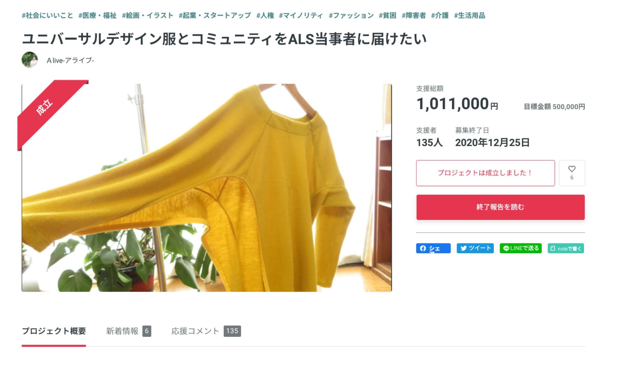 百澤さんはALSの人でも着れるお洒落着をクラウドファンディングで計画されて、見事達成されていました。