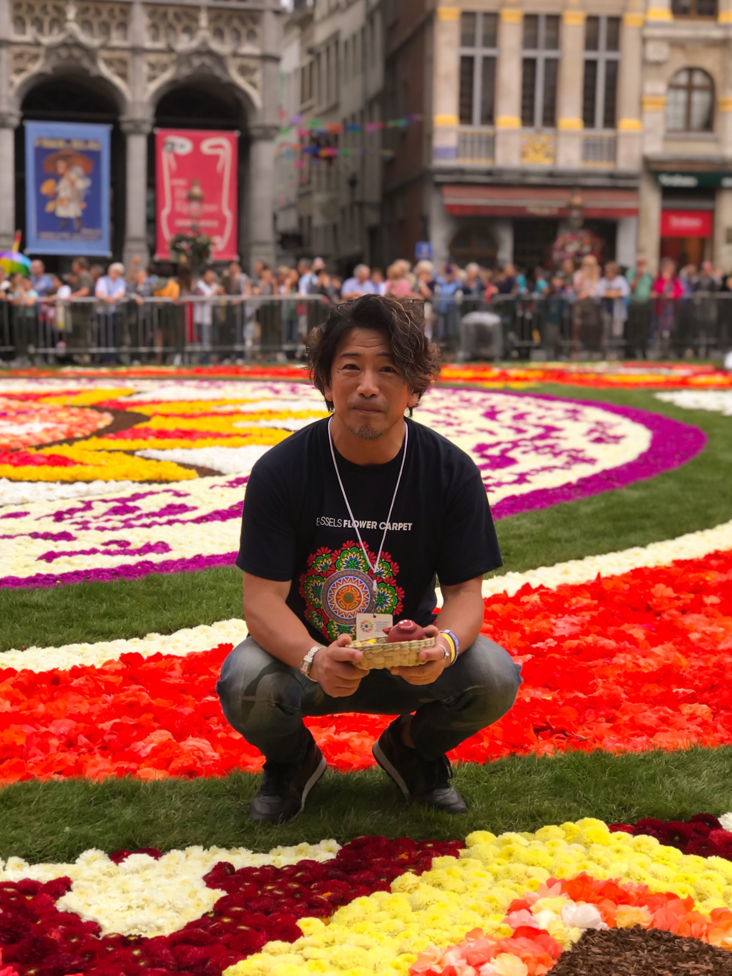 「インフィオラータ」を日本で始めた当初は、出荷できず廃棄されてしまう花に、もう一花咲かせてあげたいと思い使っていました。しかし年々会場数が増え、使用する花の量も多くなり手配することが困難になりました。近年では年間50万本を超える花を使い、多い年では100万本を超える時もあります。