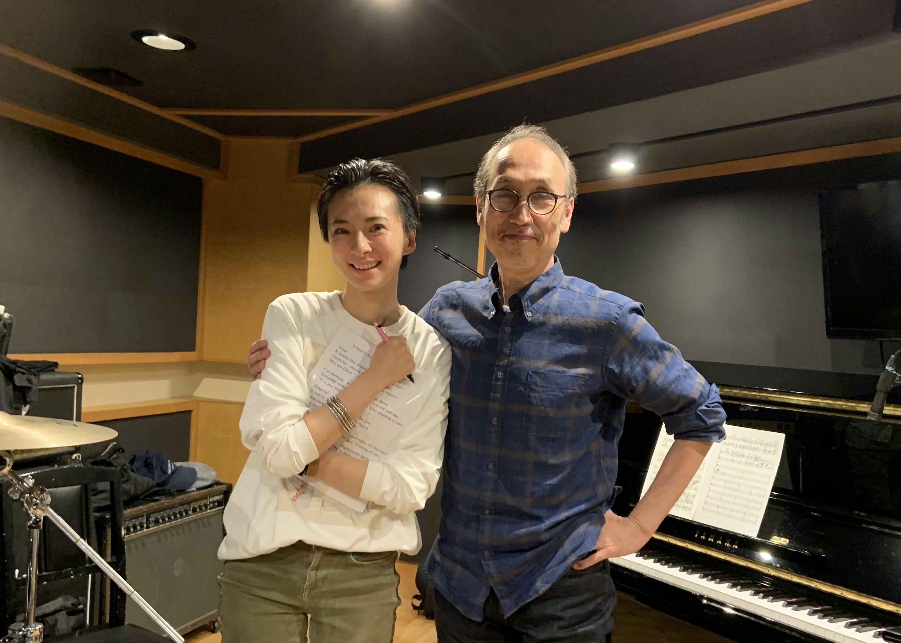 このタイミングで、梅宮万紗子さんから、またまた応援動画が届きました!やった♫今回は歌の稽古の時に映した、もう一人の主役の大森さんとのツーショットの写真と共に。