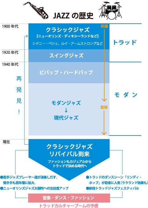 1920年代には、スイングジャスとして引き継がれ、「モダンジャズ」へと移行する1940年代まで、人々を楽しませてきました。