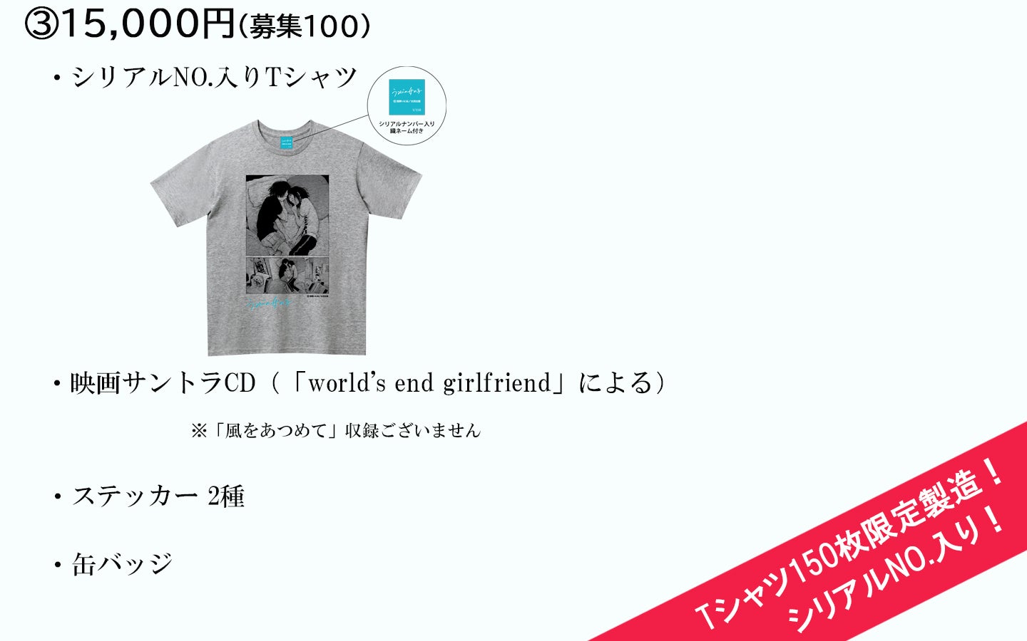 ※「シリアルNO.入りTシャツ」及び「映画サントラCD」は③、④のリターン共通です。