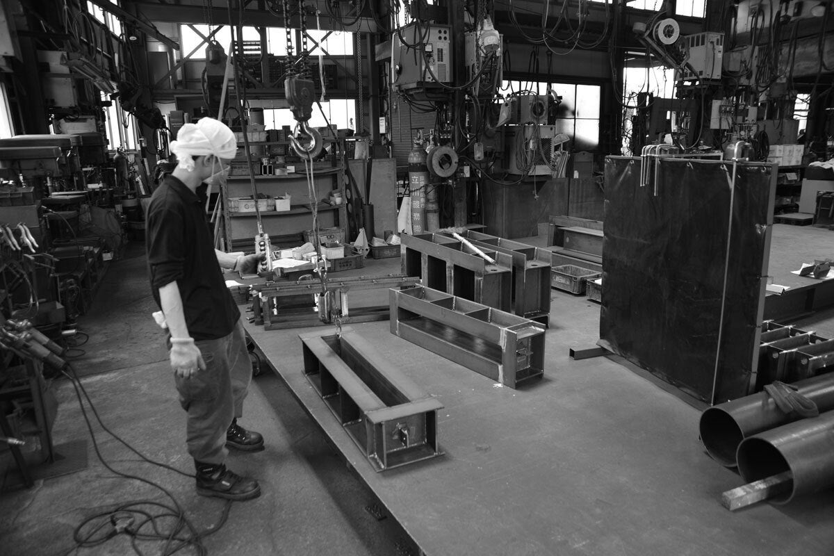 当社が作るものは、客先からの設計図を基に溶接や機械加工という工程を経て、図面に忠実に作られた工業や産業に使う製品です。