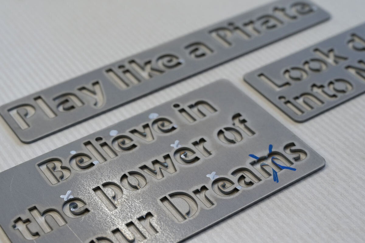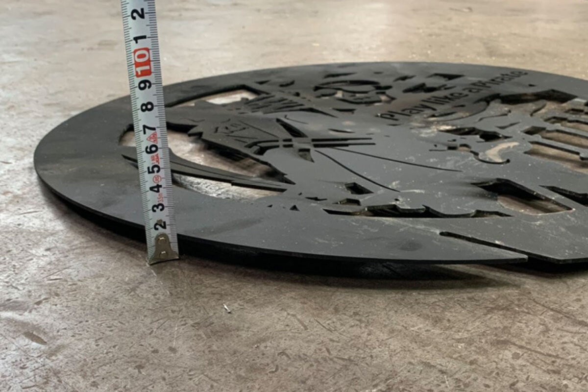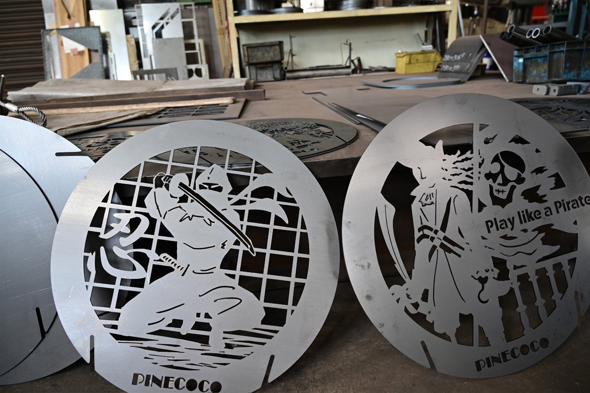 歪みは鉄板の厚みを増していけば解決しますが、持ち運びに不便になってきますし、なによりも細かいデザインをレーザーで切り抜くのが厚いほど困難になってきます。