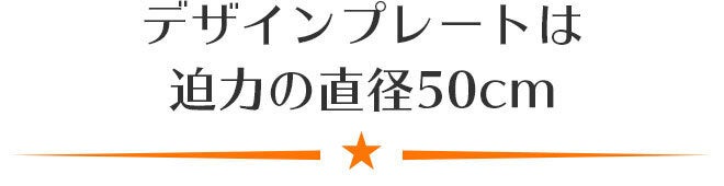 ・デザインプレート:直径50cm×50cm、板厚2.3mm、平均2.6kg(デザインによります)