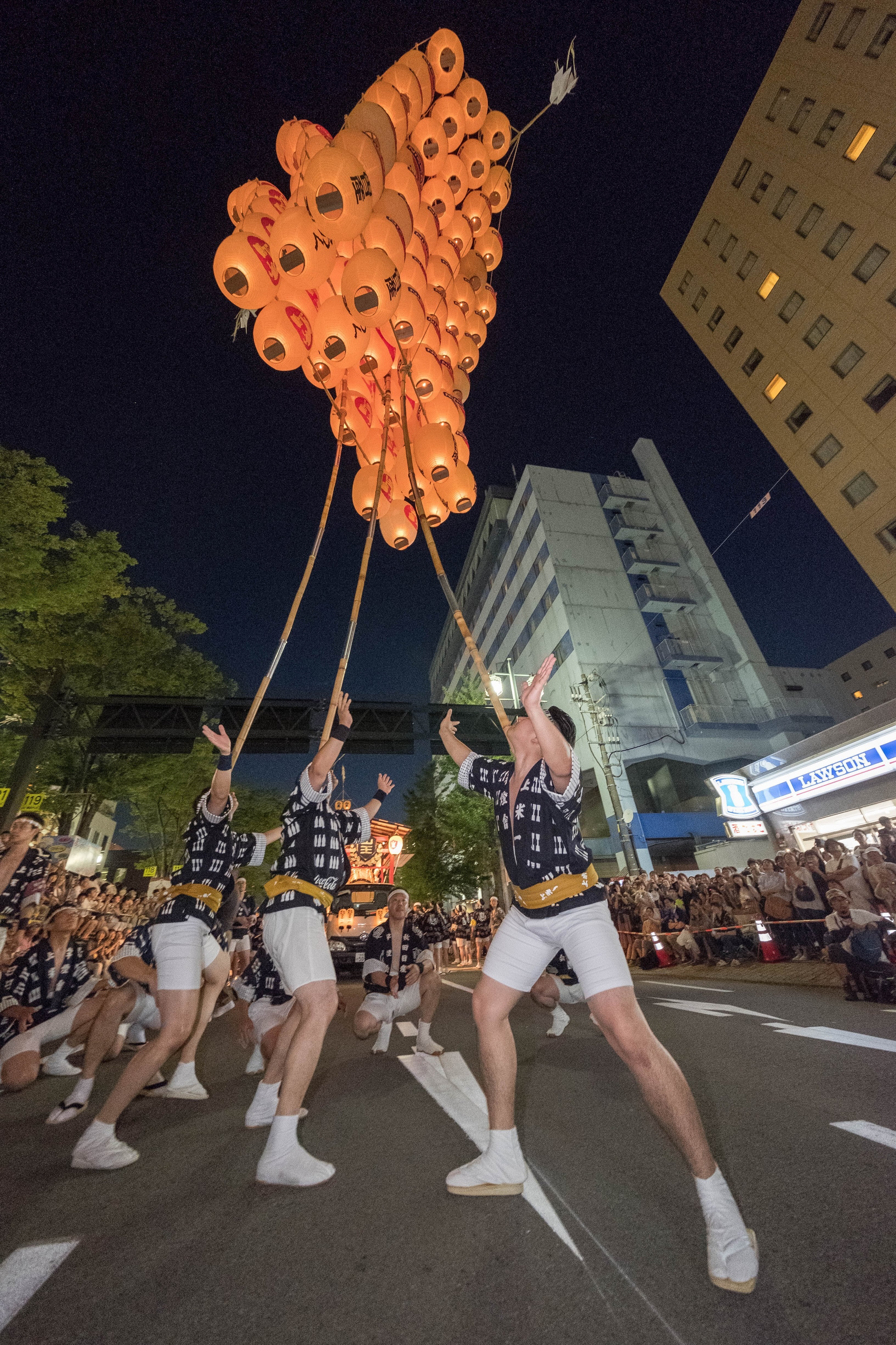 約280本の竿燈、約1万個の提灯が夜の大通りを埋めつくす様子は、「天の川が地上に舞い降りる」と表現されるように、まさに圧巻の光景です。