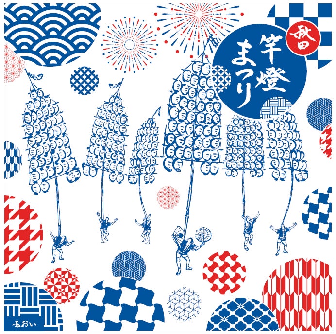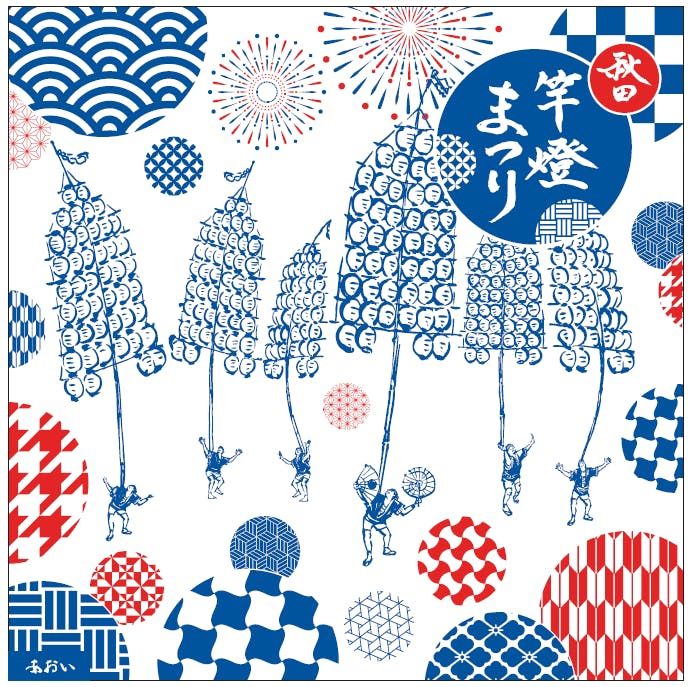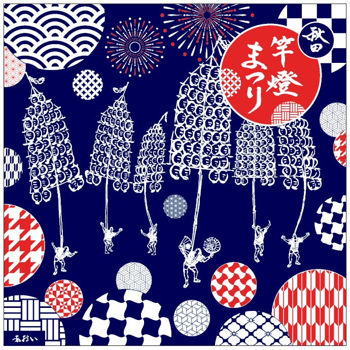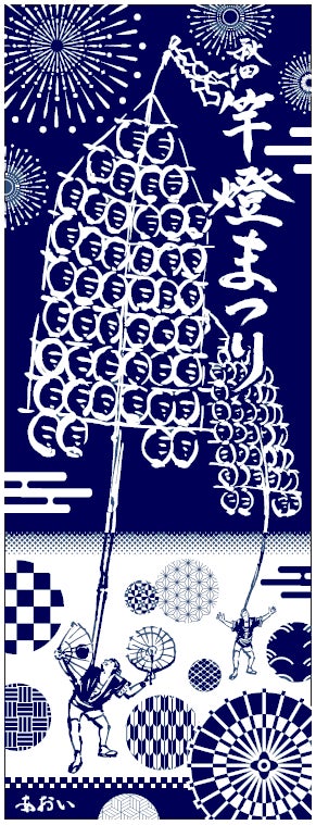 竿燈の竿の形や、演技者のダイナミックな姿などをイラストでしっかり表現した、こだわりの手ぬぐいです。お部屋に飾るもよし、もちろん手ぬぐい本来の用途としてもご使用いただけます。