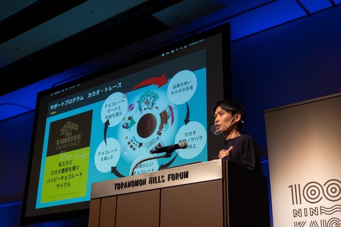 2021/11/14 07:30100人カイギsummit。テーマは「つながるはひろがる。」100人カイギは全国61地域に広がっているコミュニティイベントです。各地域で活躍、面白い活動をするゲストに登壇してもらって、新しい人や取り組むを知る、人の繋がりを生んでいます。今回、小田原100人カイギから推薦いただき、全国版のsummitでナマガトと途上国問題についてお話させていただきました。 1.チョコレートの原料であるカカオの 農家さんたちが抱える問題2.その問題を解決しようと取り組むサステナブル・プログラム3.私たちがプログラムに参加してどうやってカカオ農家さんたちの問題に貢献できるのかこの3つの軸で話をさせていただいた上で「食べる事が貢献に繋がる」というナマガトーショコラの仕組みと取り組みについてご紹介しました。最後に、、、自分たちが購入するモノの背景や状況を考えてみる事の重要性、サステナブルな材料や原料を使うことのオススメをさせていただきました。 ナマガトーショコラは途上国や生産者へのフォーカスを重要視しているところ目的と目標の中の各指標に、途上国や生産者の問題への貢献が含まれています。アウトプットにもその事が表れているので、社会問題に対して、すごい取り組みをしていると勘違いされることがよくあります。ナマガトーショコラも実は特別なことはしていません。かなり端的にいうと、サステナブルな材料を使ってお客様が喜んでくれる製品を頑張って作ろうとしているだけなのです。サステナブルな材料を使ってる以外は皆さんと同じです。いやむしろ皆さんの方が、私たちよりも長い期間、情熱をもって取り組まれていると思います。私たちにとってお客様が喜ぶ商品やサービスを提供する事はとても重要なことではありますが、その商品やサービスの原料や元となるモノに関しても、もう少し気遣えてあげられたら、素敵だなぁと感じるのです。グラレコを書いてくれているスタッフさん コロナの影響でリアルは人数制限があり少人数でしたが、オンラインでは120名程の参加者がいらっしゃったと聞きました。私たちの取り組みに関してこうして多くの方へ、伝えられる御機会をいただき心から感謝しています。他の登壇者の方の話もとても面白く勉強になりました。また紹介できたら良いなと思います。もしお住まいの地域に100人カイギがあったら遊びに入ってみてください♪つながるがひろがっていくかも♪♪トークセッション⑥の登壇者さんたちと もっと見る