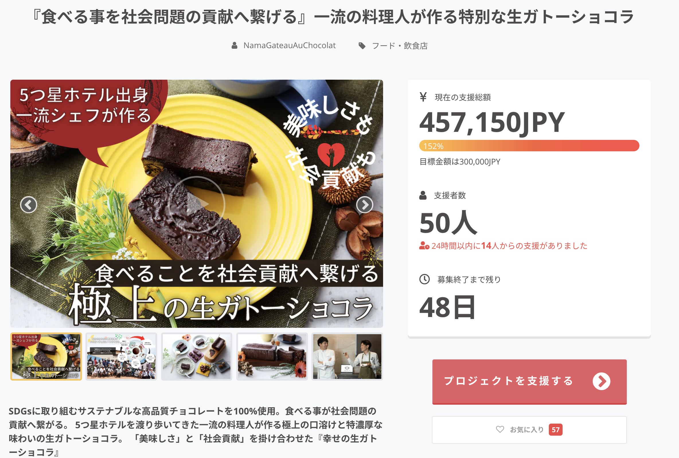 新たにネクストゴールを設定してより多くの方にガトーショコラをお届けできるように、引き続きクラウドファンディングに挑戦してまいります。