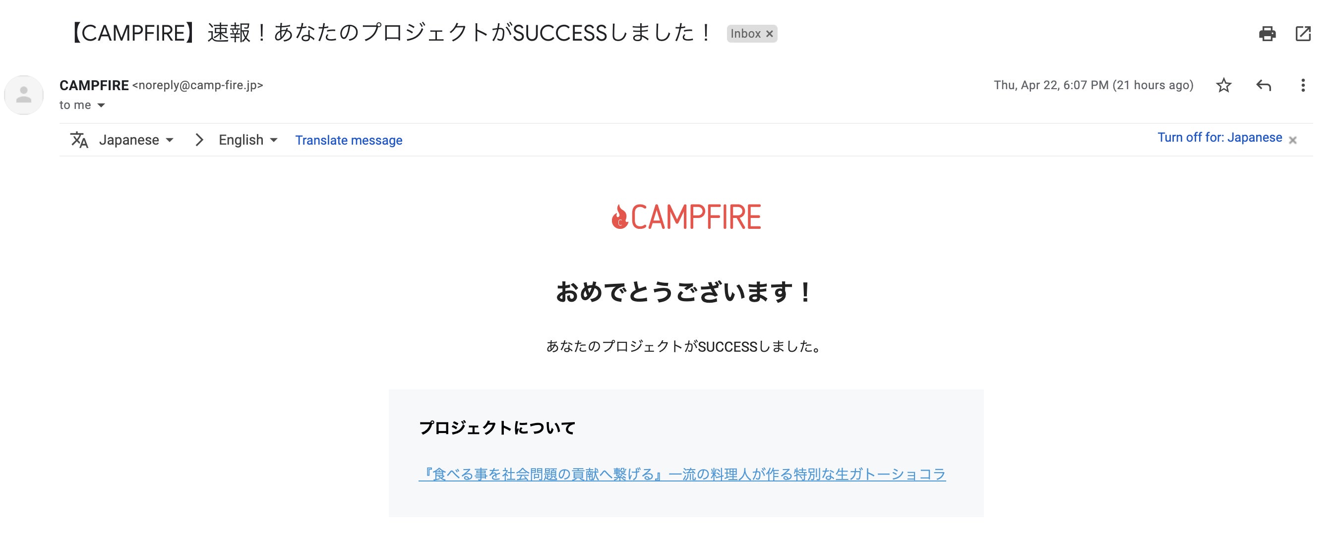 プロジェクト成功の通知の画面を見て時は感動で涙しました...