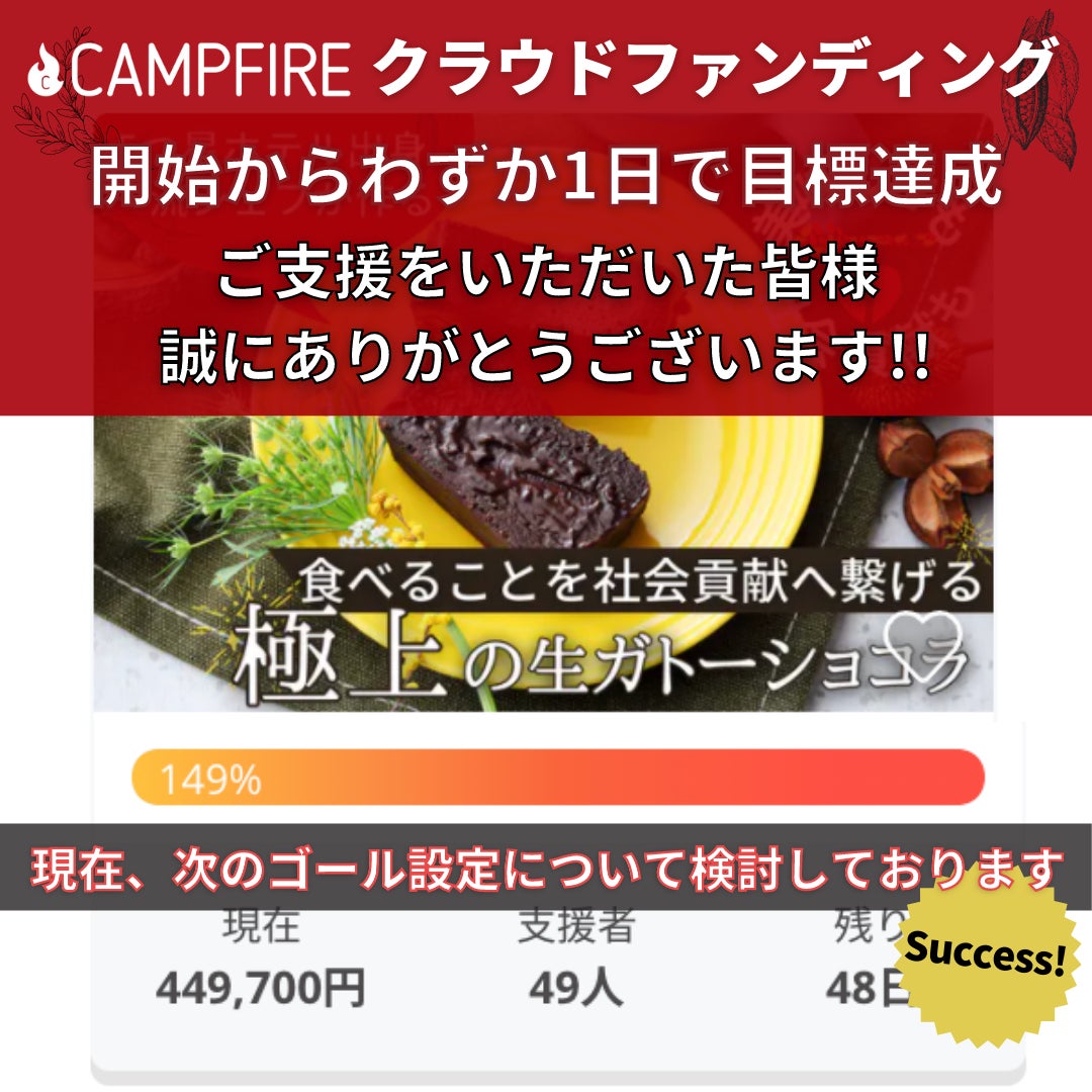 【目標金額達成!!】クラウドファンディングの目標金額30万円を開始からわずか1日で達成することができました。