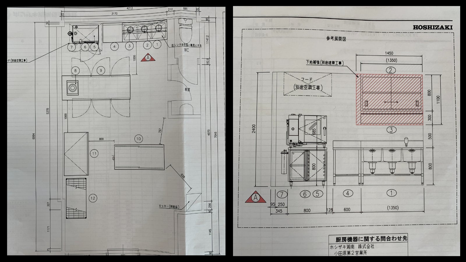 その後、ホシザキさんという業界では有名な機材メーカーさんと調理器具の相談を開始しました。