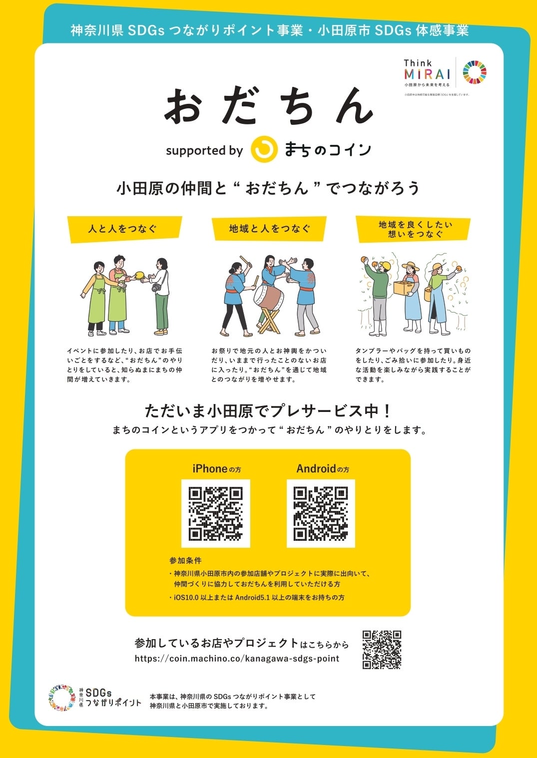 この度、神奈川県のSDGsつながりポイント事業として、神奈川県と小田原市が実施しているプロジェクトのコミュニティ通貨「まちのコイン」"おだちん"のスポットの一つとして活動することが決まりました!!