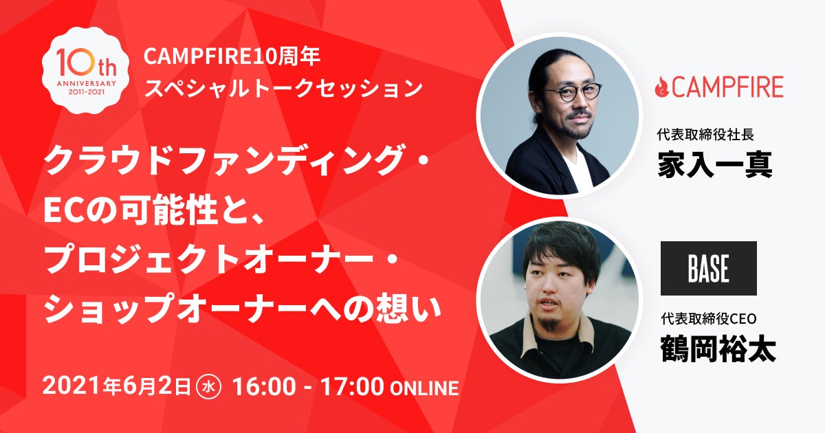 また先日、10周年特別企画としてプロジェクトオーナー向けに、BASE代表の鶴岡裕太さんをゲストに迎えた、CAMPFIRE代表の家入一真さんのトークセッションに参加しました。