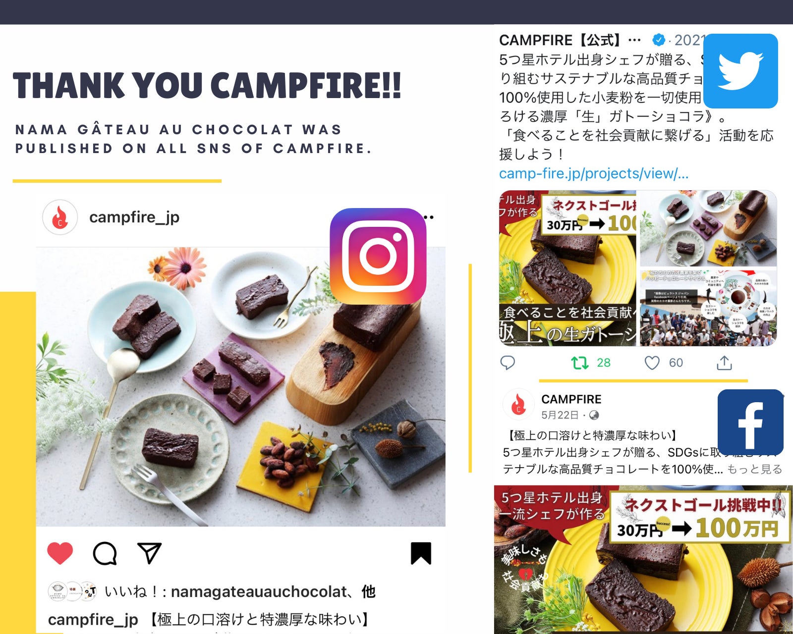 CAMPFIREの各SNSアカウントでNama Gâteau Au Chocolatのご紹介をいただきました!