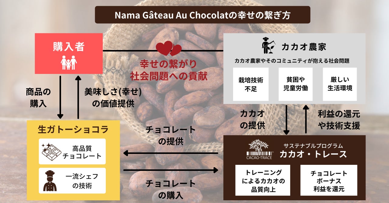 ガトーショコラを食べる事で生まれた『幸せ』が、遠い地にいるカカオの農家さんへ繋がっていくと信じています。