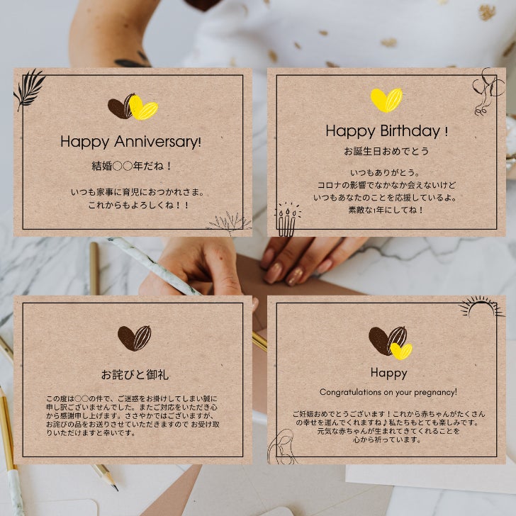 A5サイズのクラフト紙を二つ折りにして商品と一緒に送ることができます。