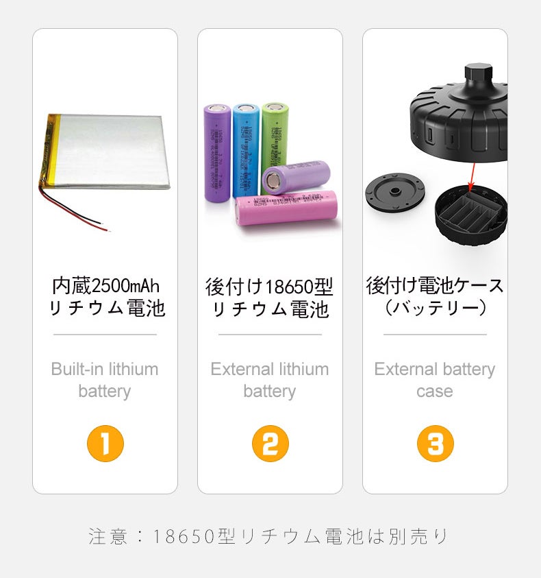 ※18650のリチウム電池になります。最大5本まで入れる事が可能です。
