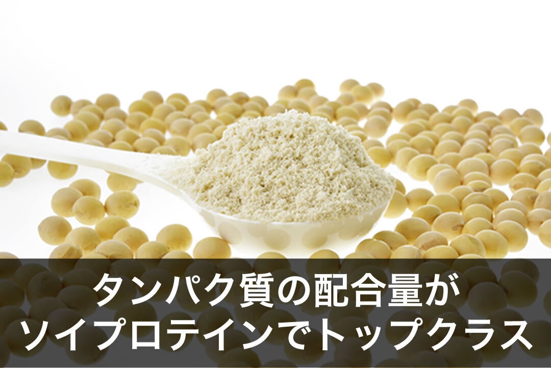 そしてタンパク質の原料となる大豆タンパクには、国内製造の遺伝子組み換えでない高品質な大豆タンパクを使用。