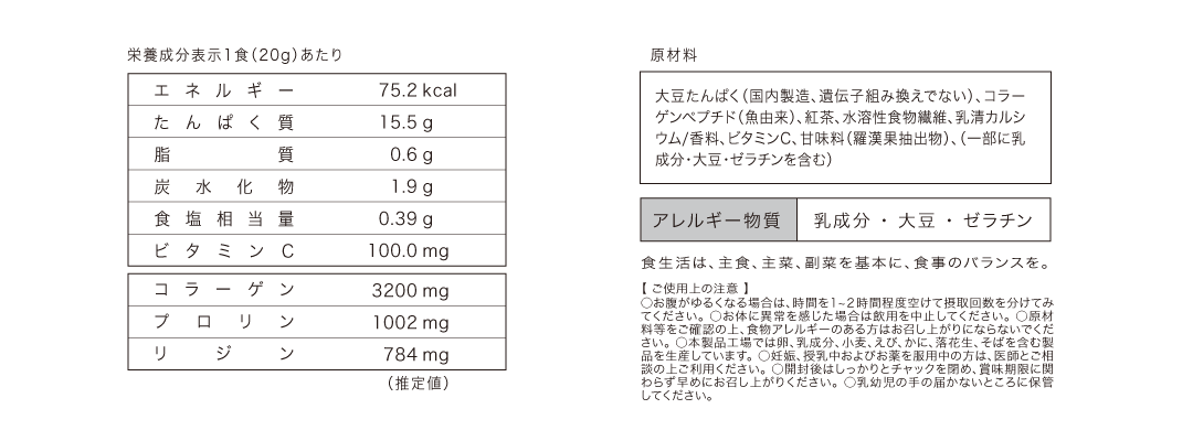 またコラーゲンの吸収をサポートするビタミンCも配合。