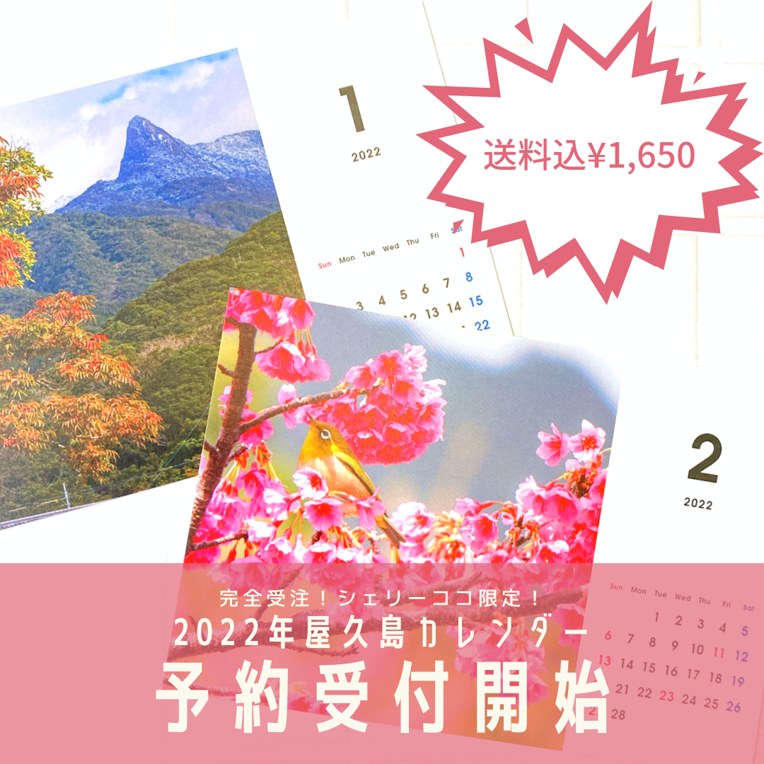 2021/09/12 16:56皆さま、こんにちは!屋久島勝手に観光大使のあずさです。お久しぶりの活動報告!今日の告知するのは…#屋久島勝手に観光大使 あずさの記念すべき初のカレンダー!!!!「カレンダー作んないの?」というお声をいただき、作ってしまいましたーー!今まで撮り溜めた写真を使って作るカレンダー…どんなテーマで写真を選ぼうかと悩んだ末2022年版カレンダーはずばり「屋久島の季節を楽しむカレンダー」に決まりました!去年、そして今年と観光客が少なかった屋久島。屋久島の景色を見たくても見にこれなかった方も多いはず!というわけで使う写真は2020.9〜2021.8までの期間に撮った写真に絞りその中から各月の季節を感じるベストショットを選んで卓上カレンダーを作りました!(ex.2022年1月のカレンダー写真は2021年1月のベストショット)○屋久島に住んでいない方にとっては「あー今頃、屋久島ではこんな景色が見れるのかあ」とまるで屋久島にいるかのような気持ちを味わってほしい!○屋久島に住んでる方には「へー!そうかあ!もうこんな季節かあ!見に行ってみようか!」と屋久島暮らしをさらに楽しく味わうきっかけになってほしい!そんな想いも込められています♪期限厳守!予約受付分のみ製作!の完全受注カレンダーです!ご予約期間は10月31日まで。郵送の場合は12月中旬までに発送完了予定です。店頭受取は12月の営業日にお渡しです!価格は1650円(税込・送料無料)ご予約はシェリーココ店頭またはシェリーココHPより承ります。↑気になる中身はこちらのリンクよりチェックいただけます!ちなみにシェリーココ店頭には実物見本もご用意しております♪2022年も屋久島とともに素敵な一年になりますように★屋久島在住・島外在住問わず皆様からのご予約、お待ちしております♪ もっと見る