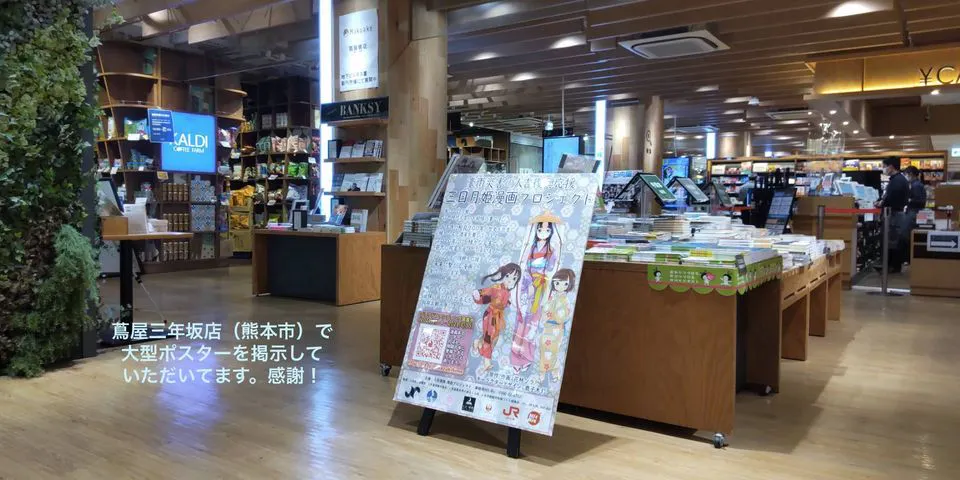 熊本市内にある蔦屋三年坂店で、大きなポスターを掲示していただきました。