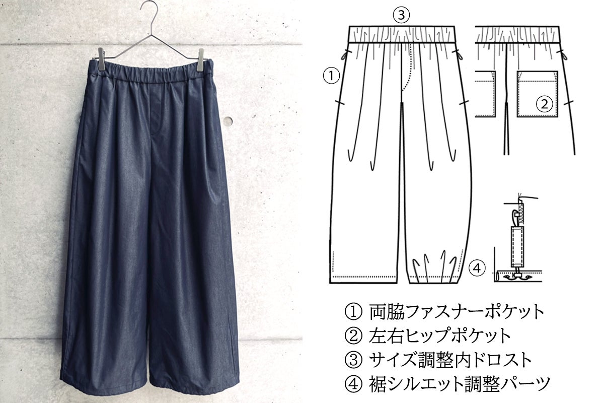 お出掛けを始めとして幅広いシーンで着用出来るよう、上下でポケット計7箇所と高い収納能力を持たせています。また、袖と裾の内側にある調節パーツを絞れば、腕まくりや足さばきが軽快に。場面に合わせた着こなしが可能です。