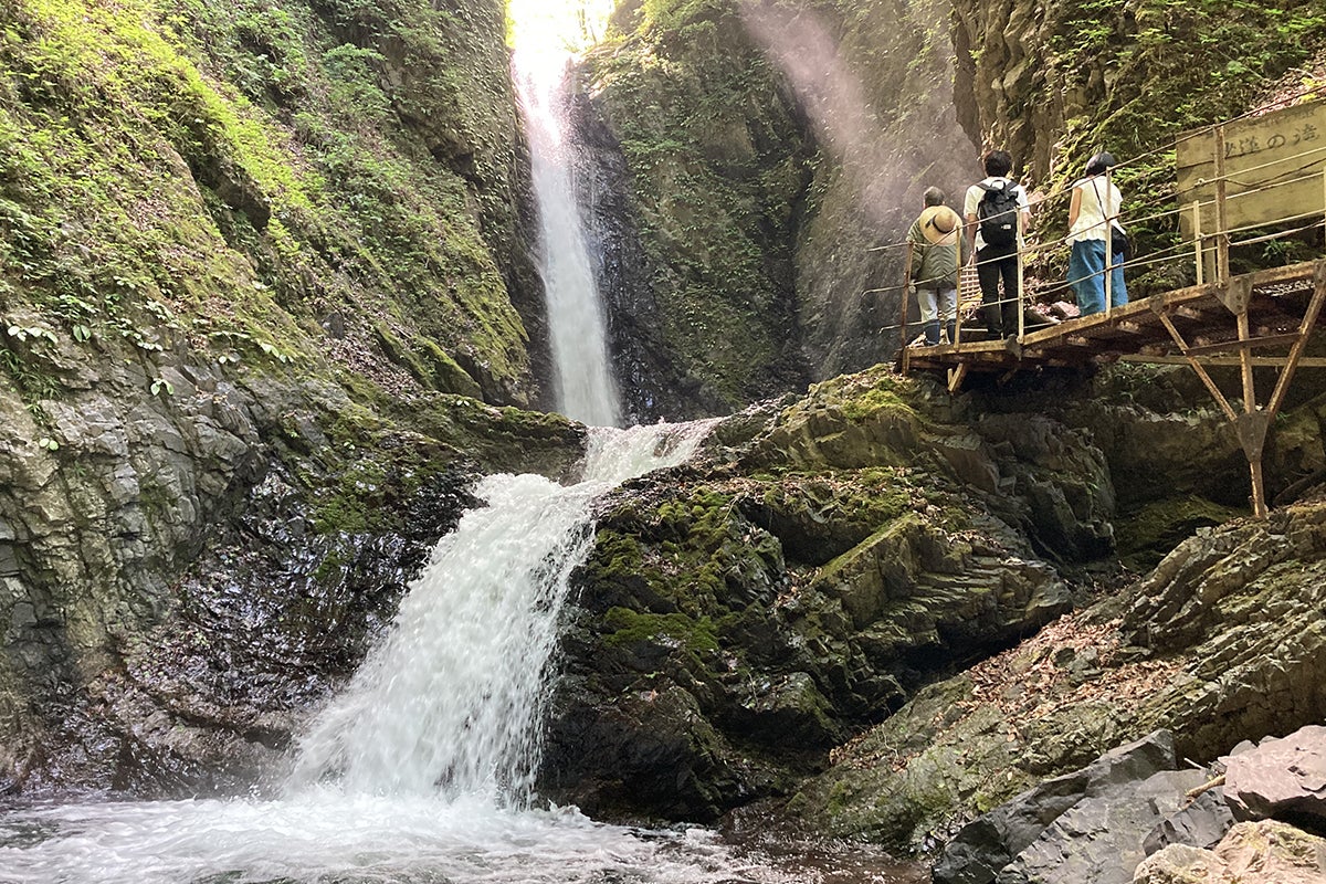 滝にたどりつくまでの切り立った岩が、どんな歴史があって、どんなふうにできたかということを今日、地質調査士の佐野さんに伺ったので、現地にてお伝えいたします!