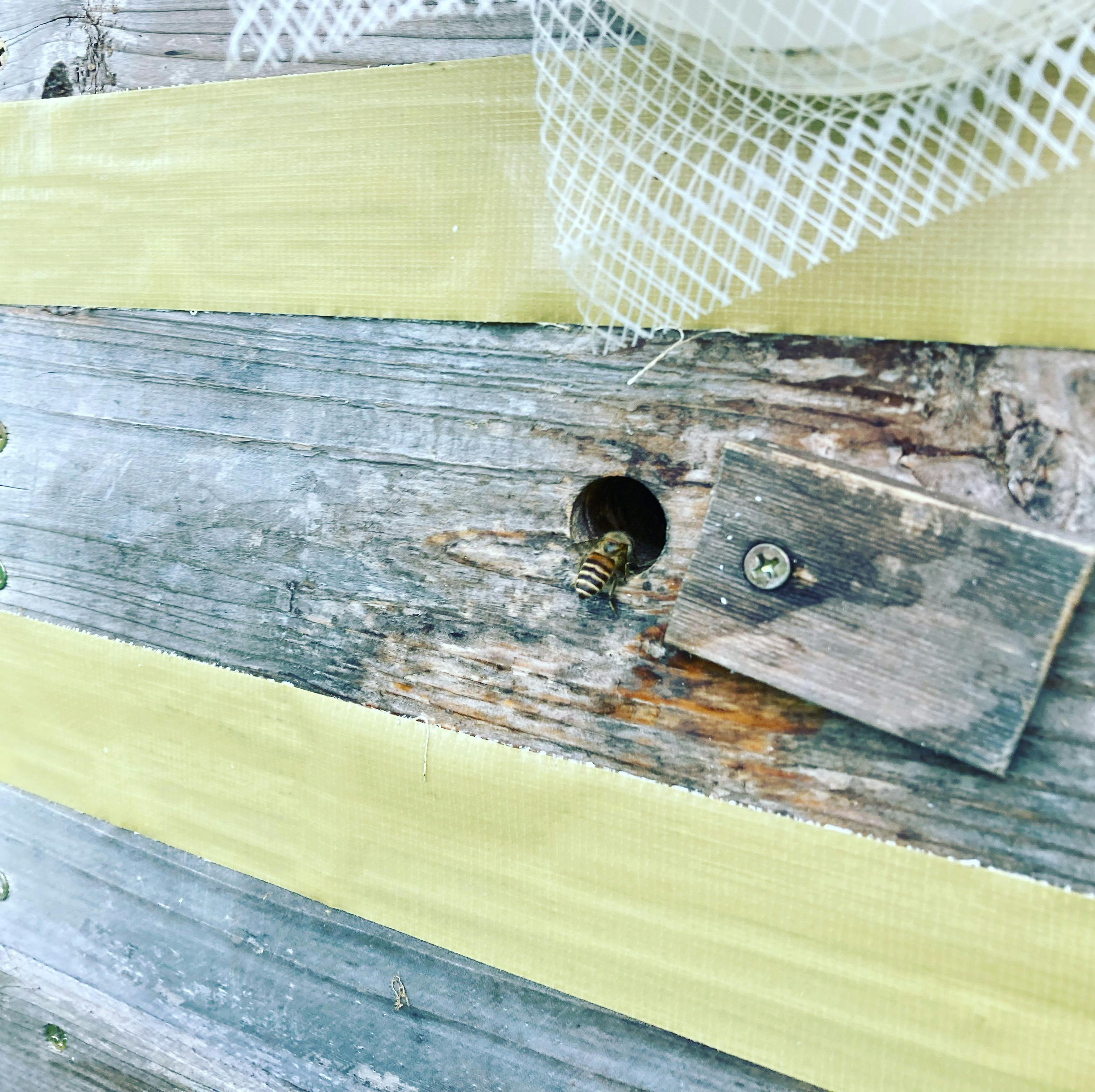 うんともすんとも言っていなかった巣箱に、ミツバチが出入りしていました!!
