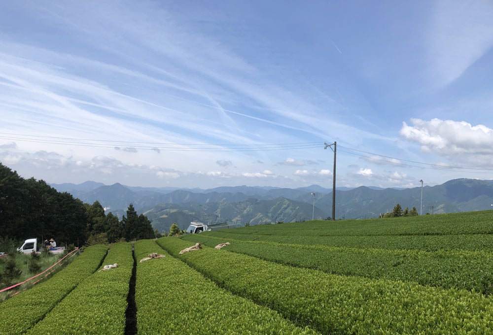 先日、10日間以上続く新茶の収獲が終わりました。お茶畑は、やわらかく、みずみずしい新芽の萌黄色に覆われ、それはそれは、とても美しい景色が広がっておりました。本来ならば、この綺麗な景色を皆さまに実際にみていただき、お茶の収獲体験なども、ご一緒できたらな、といつも思っておりました。