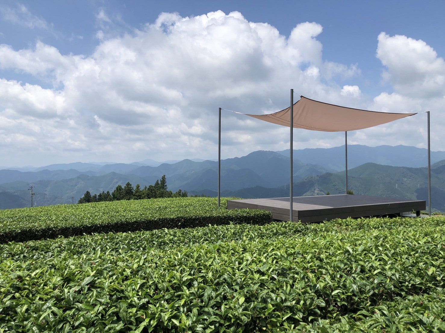 農園の傍に、清流安倍川。北の稜線の先にアルプスを眺め、南に目をやれば煌めく駿河湾、西の山間に天気を訪ね、霧立上る美しい山峡の茶園を、このお茶テラスより、ゆっくりとお茶をのみながら、皆さんに是非楽しんでいただきたいです。