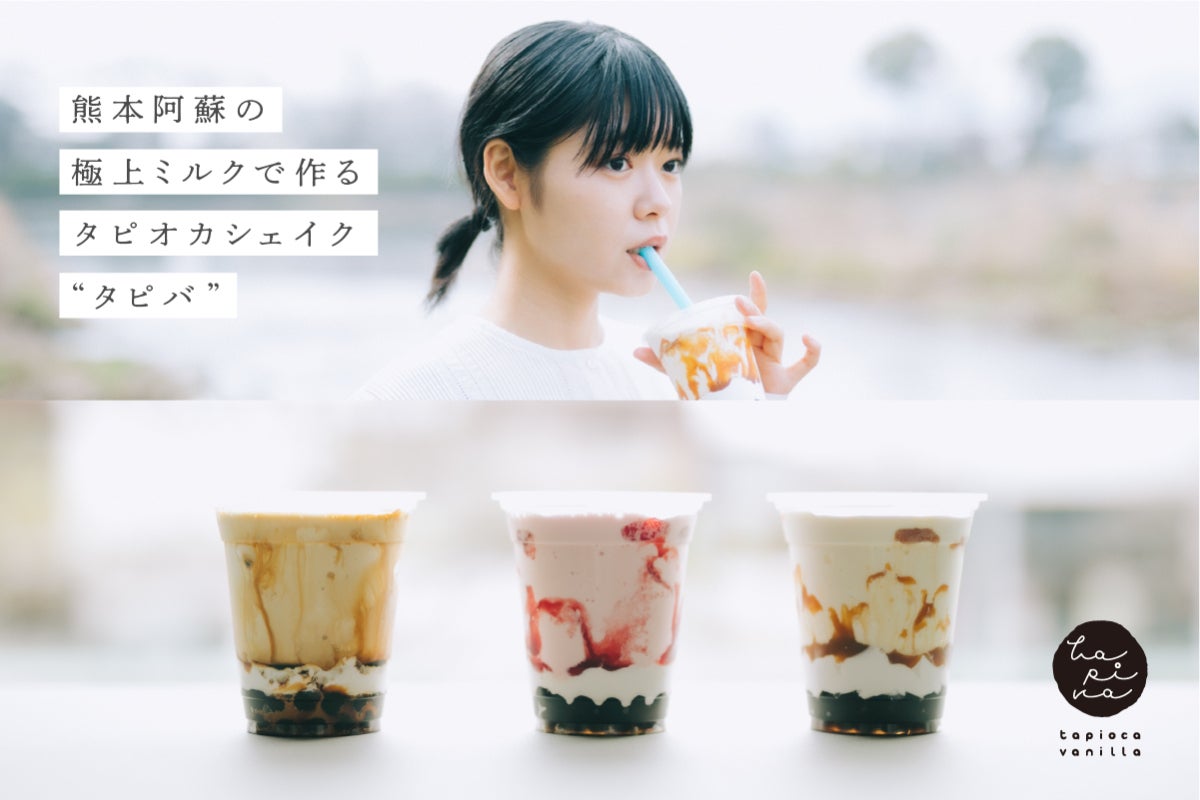 今回、始めるのは、熊本阿蘇の極上ミルクで作ったタピオカ入りバニラシェイクの新商品「tapiva(タピバ)」の冷凍販売です。冷凍庫から取り出して電子レンジで90秒温めれば、タピオカはぷるぷるもちもち、シェイクは飲み頃な柔らかさに。新感覚のタピオカドリンクが、ご自宅で楽しめます。
