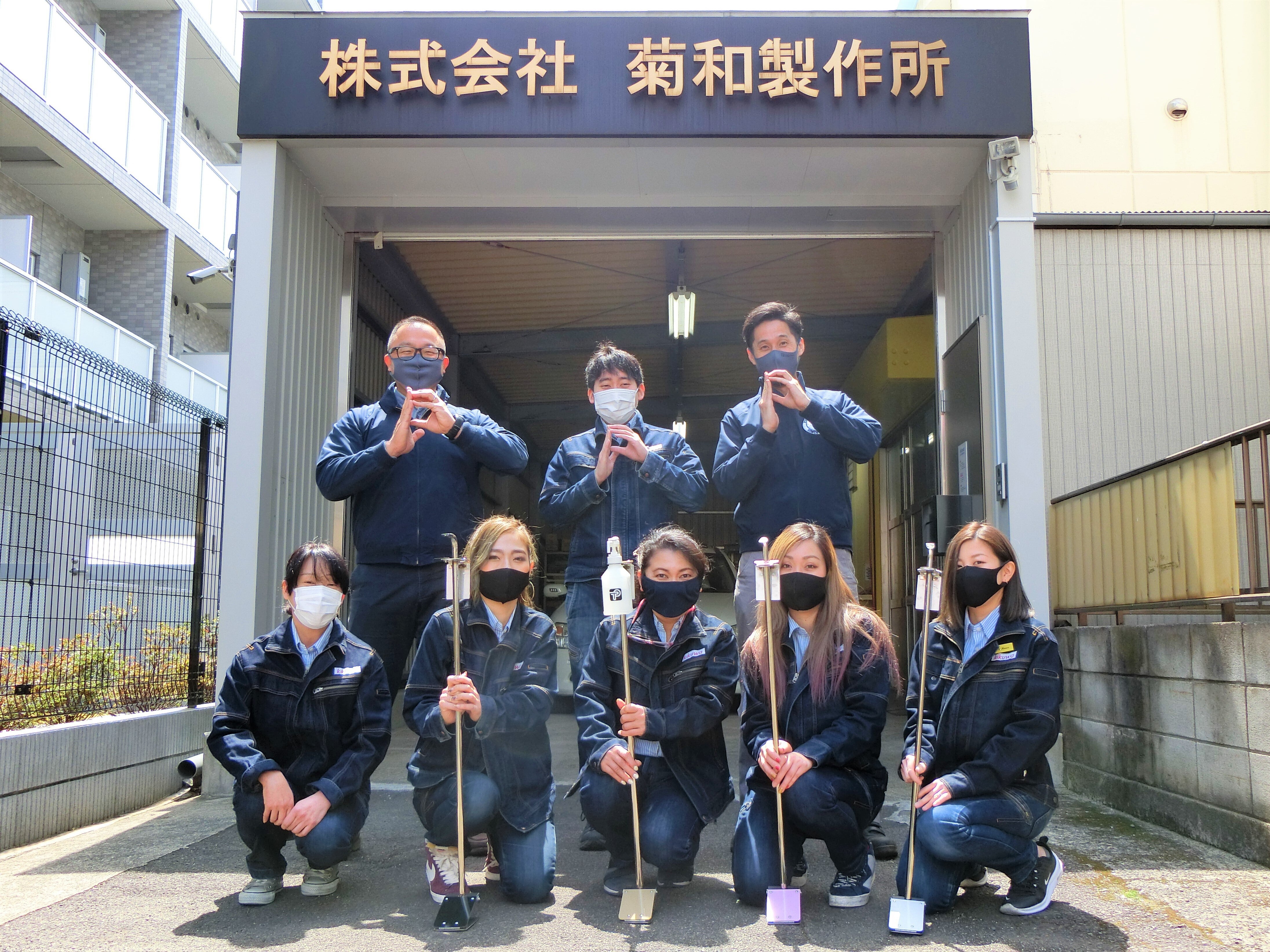 コロナ禍の2020年5月より動き出した第1弾プロジェクトで、大田区を中心とした15社の町工場仲間に声を掛けて、足踏式アルコール消毒液スタンドを開発・製造し、近隣の医療機関や学校・区役所などに寄贈をさせて頂きました。