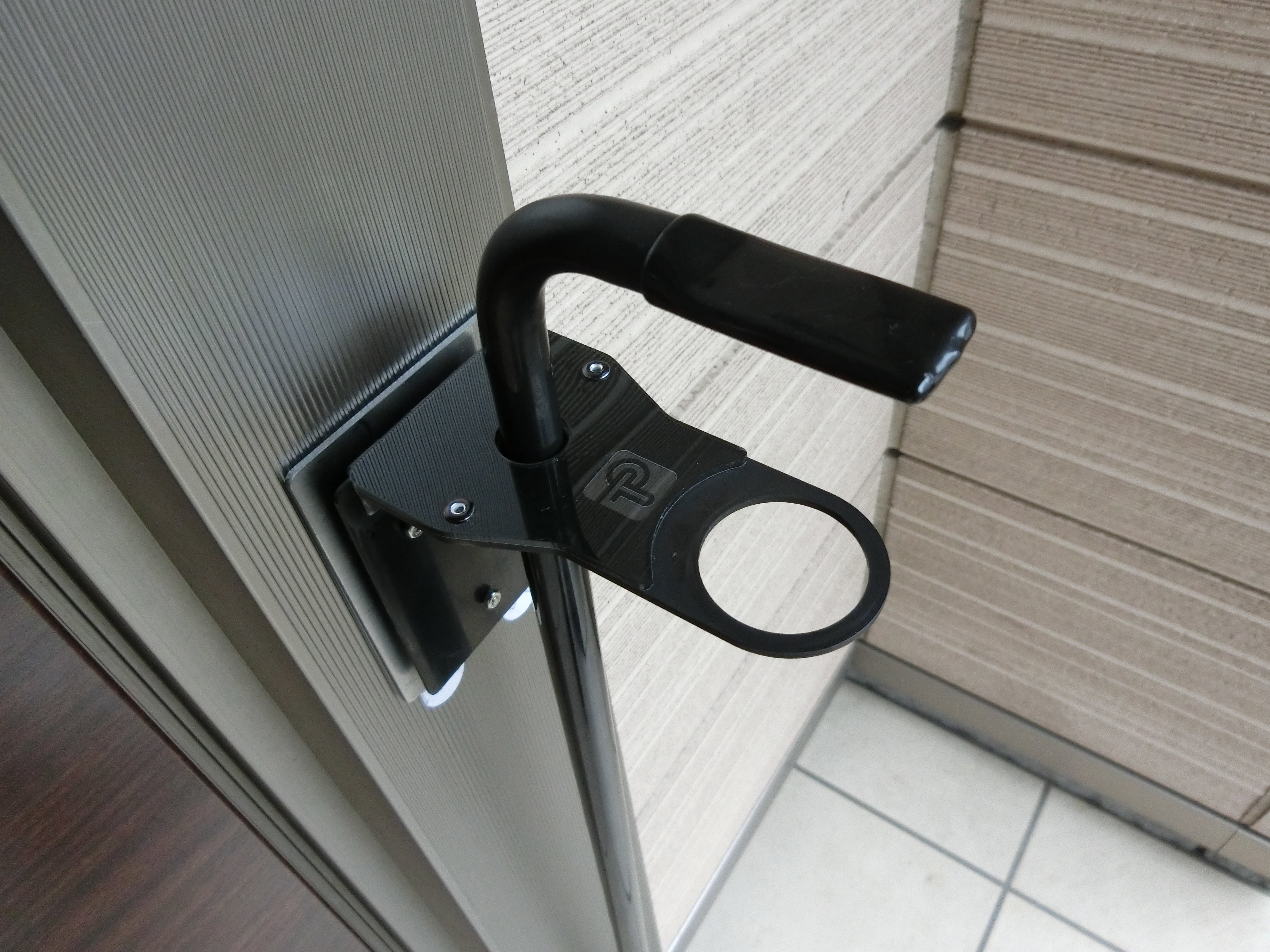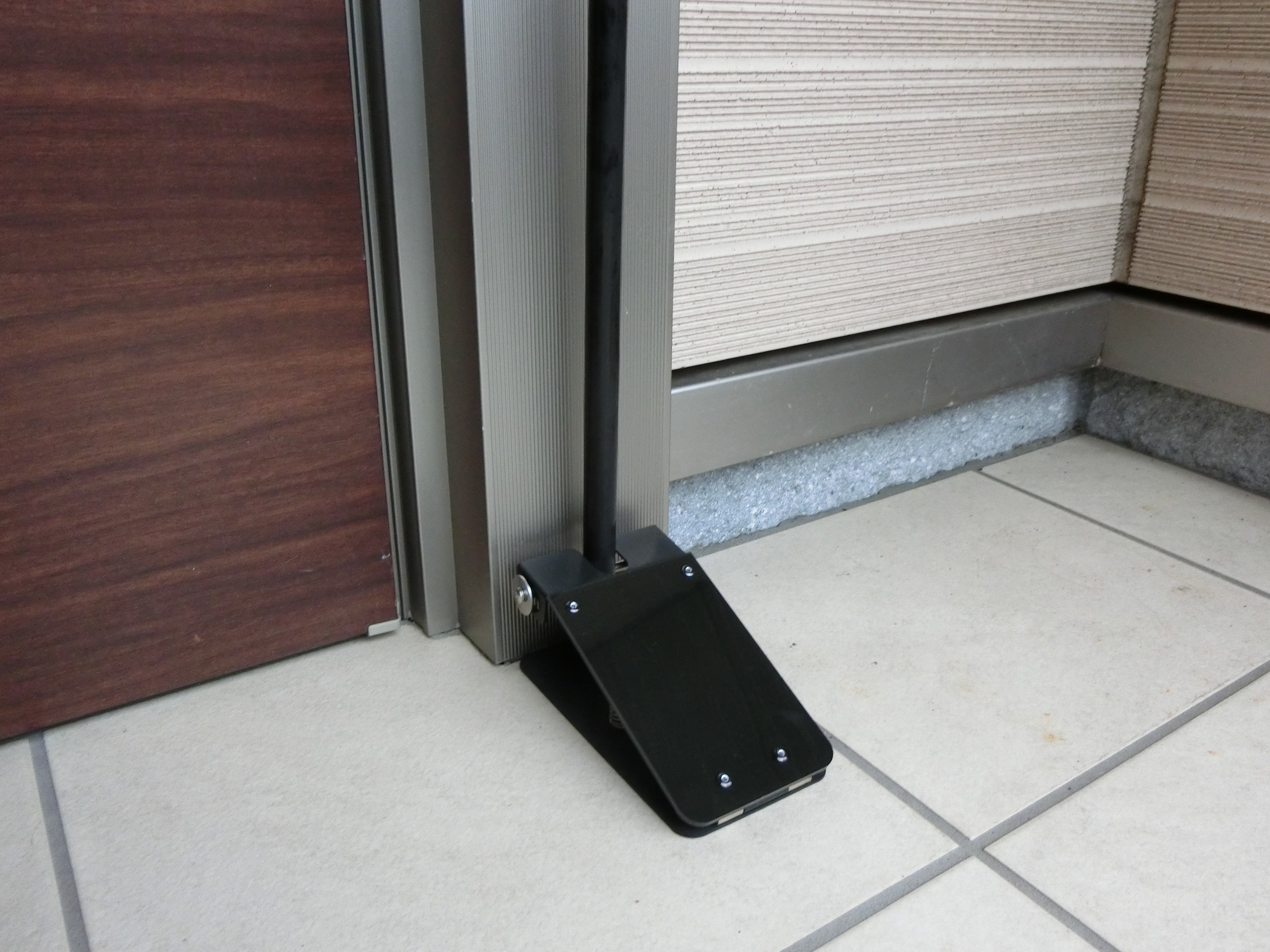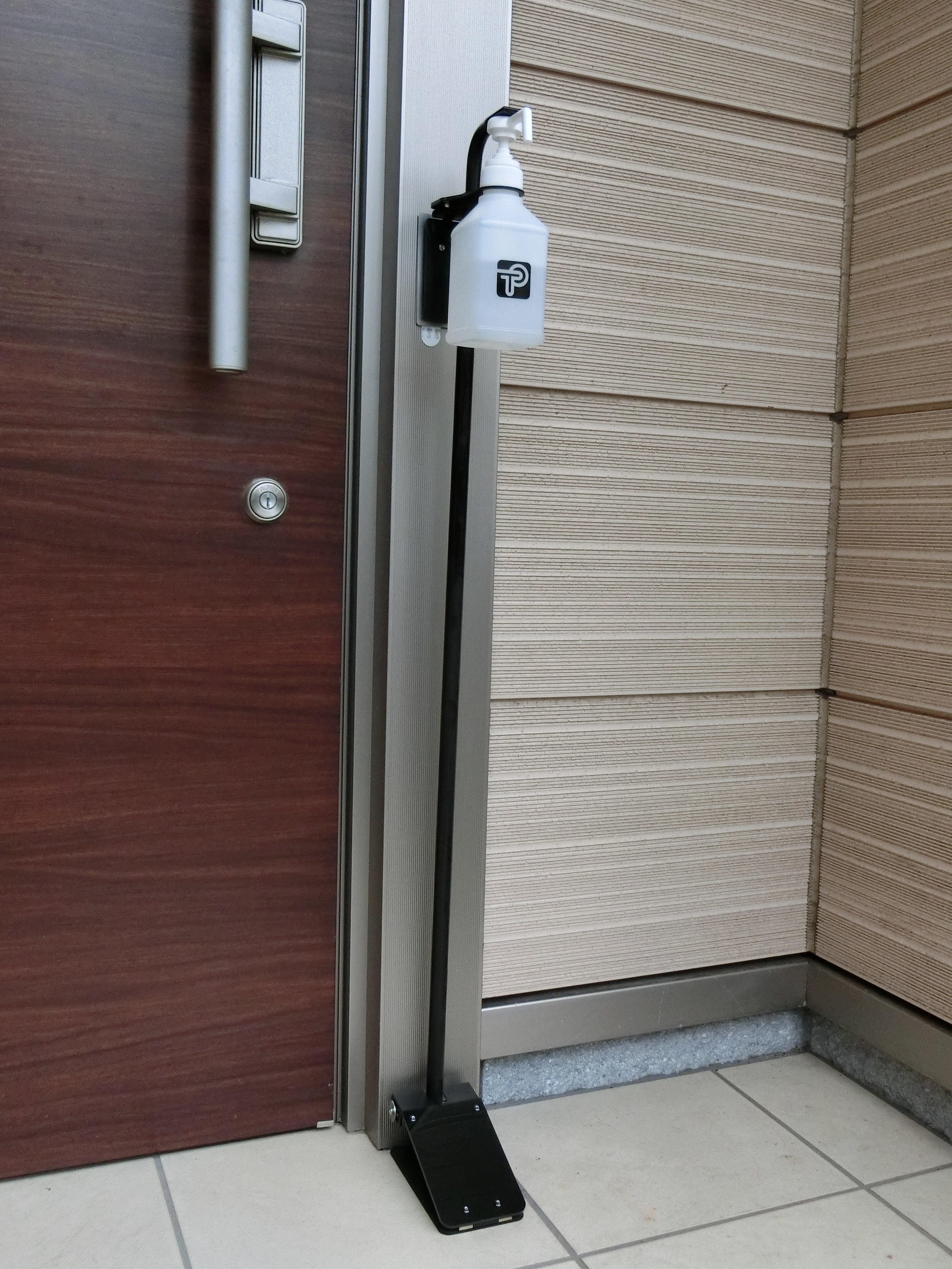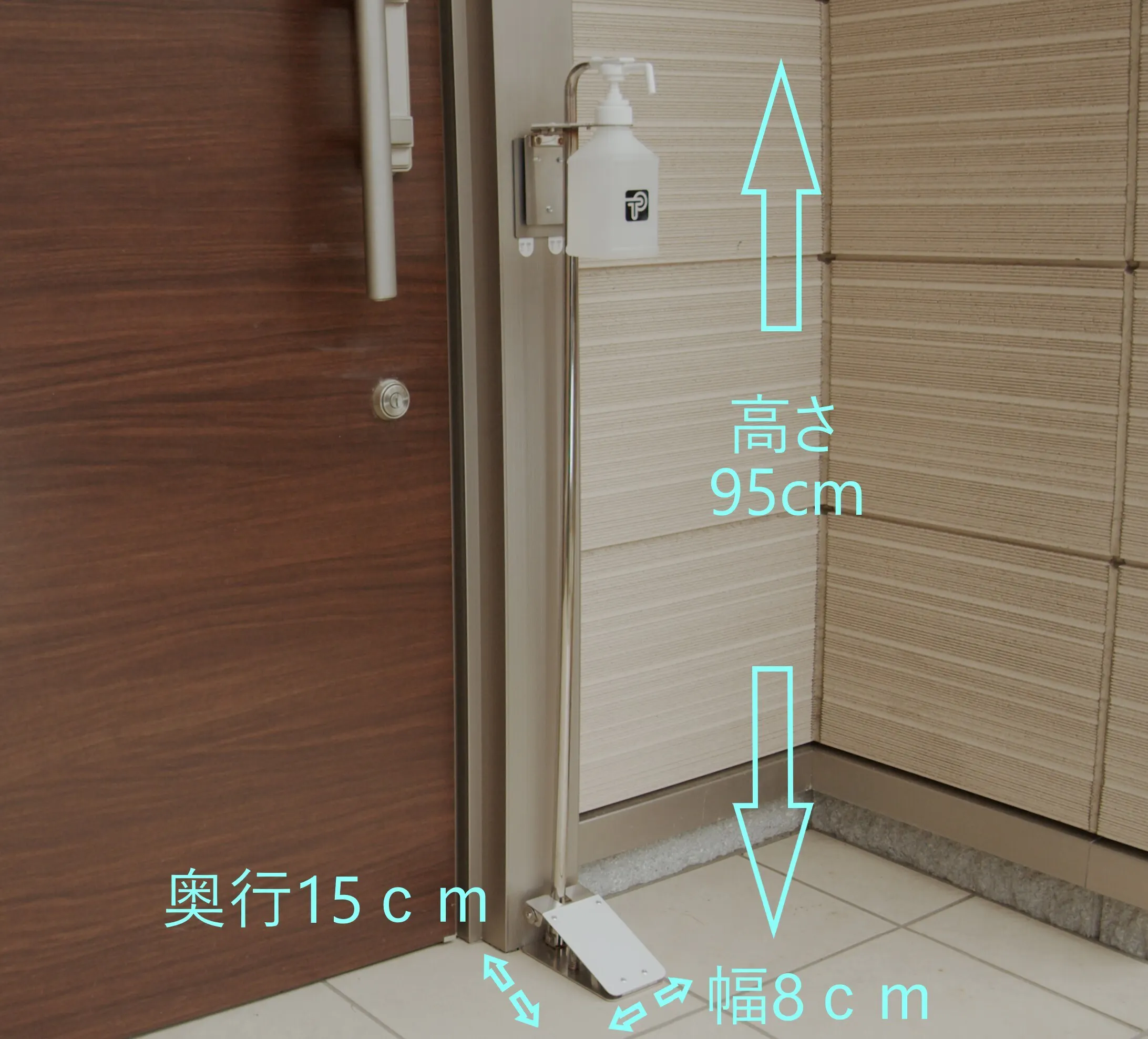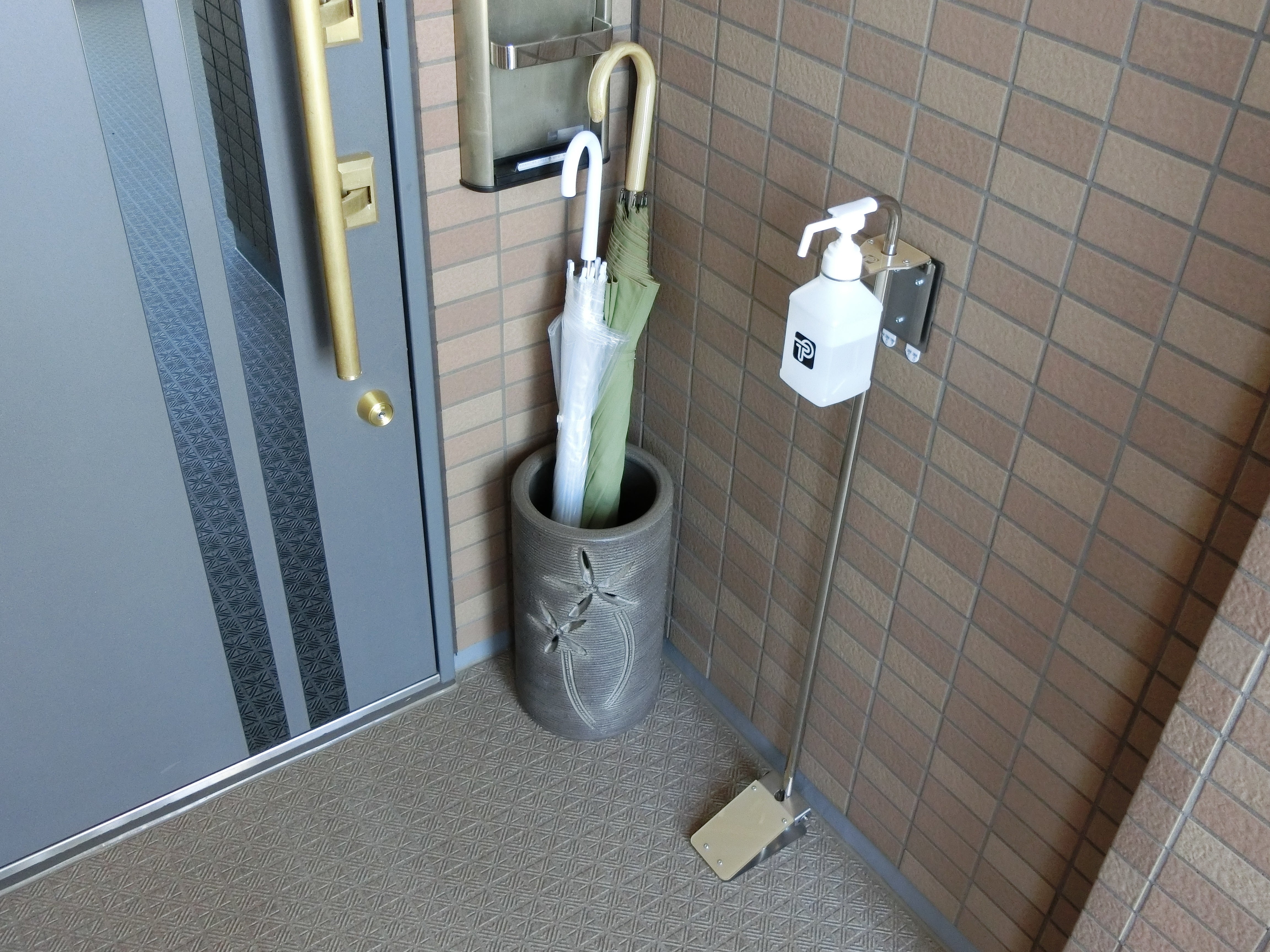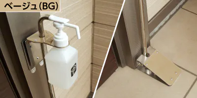 今までスペースの問題で設置が難しかったご家庭の玄関や小規模店舗様の入り口へ簡単に取り付けが出来るようになっています。<設置例① マンション玄関 カラー:ベージュ(BG)>