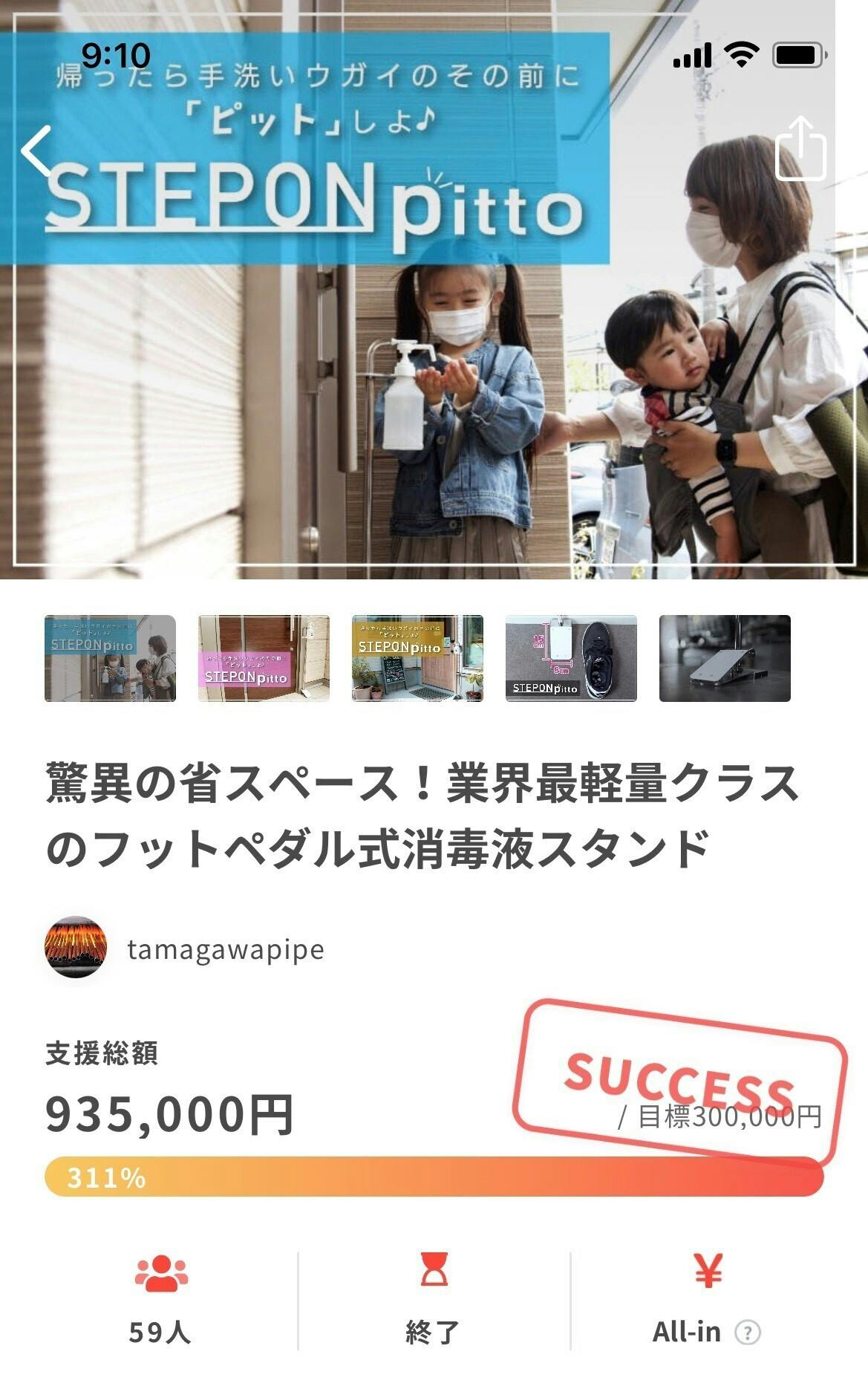 2021/06/01 09:33ご支援者のみなさまおはようございます。おかげさまで、弊社製品STEPONpitto(ステップオンピット)のクラウドファンディングプロジェクトが目標金額達成いたしました。そして昨日2021年5月31日で募集を終了いたしました。みなさま、ご支援いただき、またご紹介いただいたり、誠にありがとうございました。先日活動報告させていただきましたが、この度新たに組立作業や保管のために新たに倉庫を用意いたしました。現在絶賛組立作業中です。お届け予定は追ってご連絡させていただきますが、いち早くみなさまのもとへpittoをお届けできるよう、誠心誠意お作りいたしますのでもう少々お待ちくださいますようお願い申し上げます。(今月6月より順次発送予定ですが、日程確定しましたらまたご連絡いたします)弊社玉川パイプのような下町の町工場からこのような製品を発信させていただきましたが、ここまで多くの方にご支援いただけるとは正直思っておりませんでした。本プロジェクトはご支援者様へのリターン品をお届けするまでがプロジェクトになりますが、今後STEPONpittoをはじめ、また違うプロジェクト、プロダクトの開発をしていき、パイプのニーズ開拓に励んでいけますよう頑張りますので、今後も末永くご支援いただけましたらと思っている次第です。長くなりましたが、取り急ぎ御礼まで。 もっと見るpittoの生産スタート!!