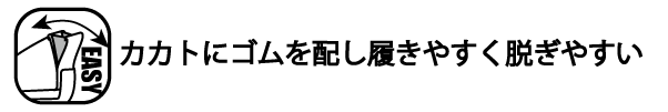 カカトにゴムを配し、脱ぎ履きがしやすい仕様になっています。