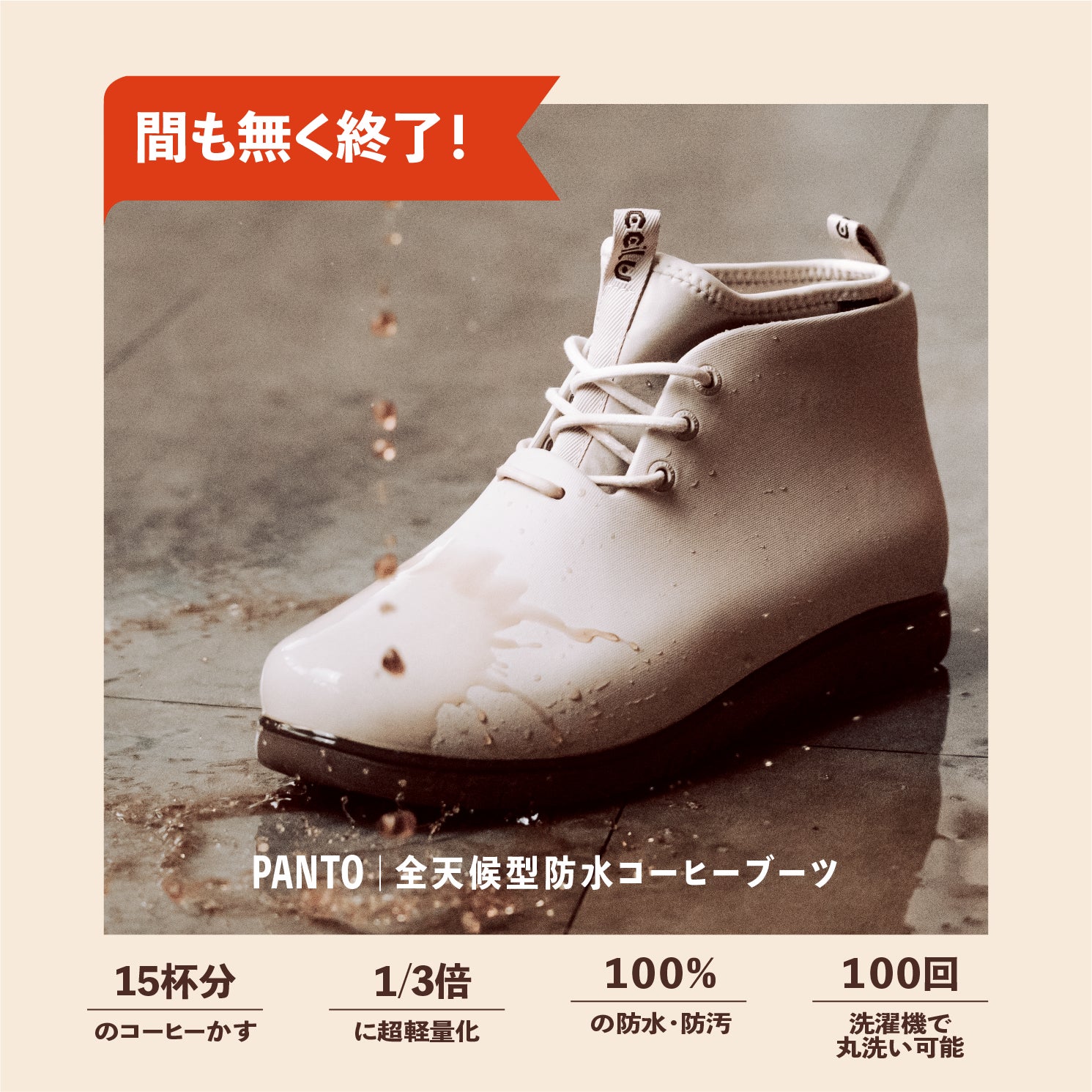コーヒーかすがPanto全天候型防水ブーツに変身!消臭・除湿・耐滑・丸洗い可能