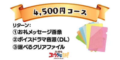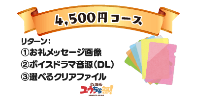 選べるクリアファイル、お礼のメッセージ画像、ボイスドラマ音源+ボイスコミック動画