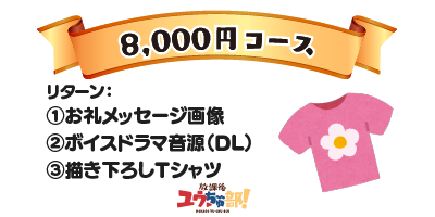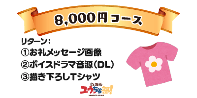 描き下ろしTシャツ、お礼のメッセージ画像、ボイスドラマ音源+ボイスコミック動画