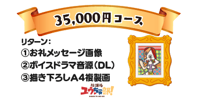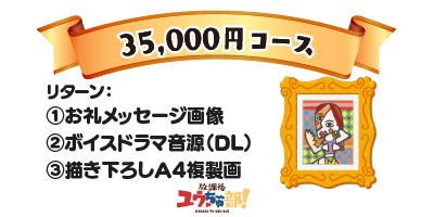 描き下ろしA4複製画(プリモアート)、お礼のメッセージ画像、ボイスドラマ音源+ボイスコミック動画