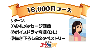 描き下ろしB2タペストリー、お礼のメッセージ画像、ボイスドラマ音源+ボイスコミック動画