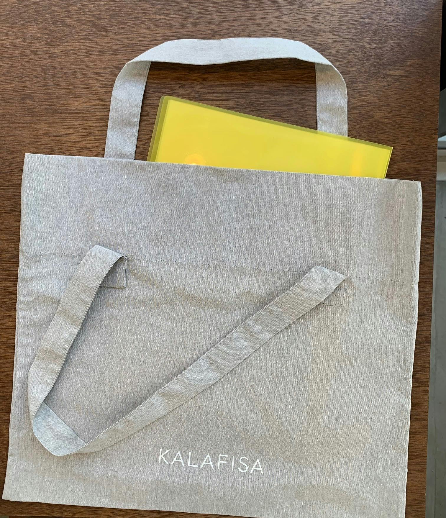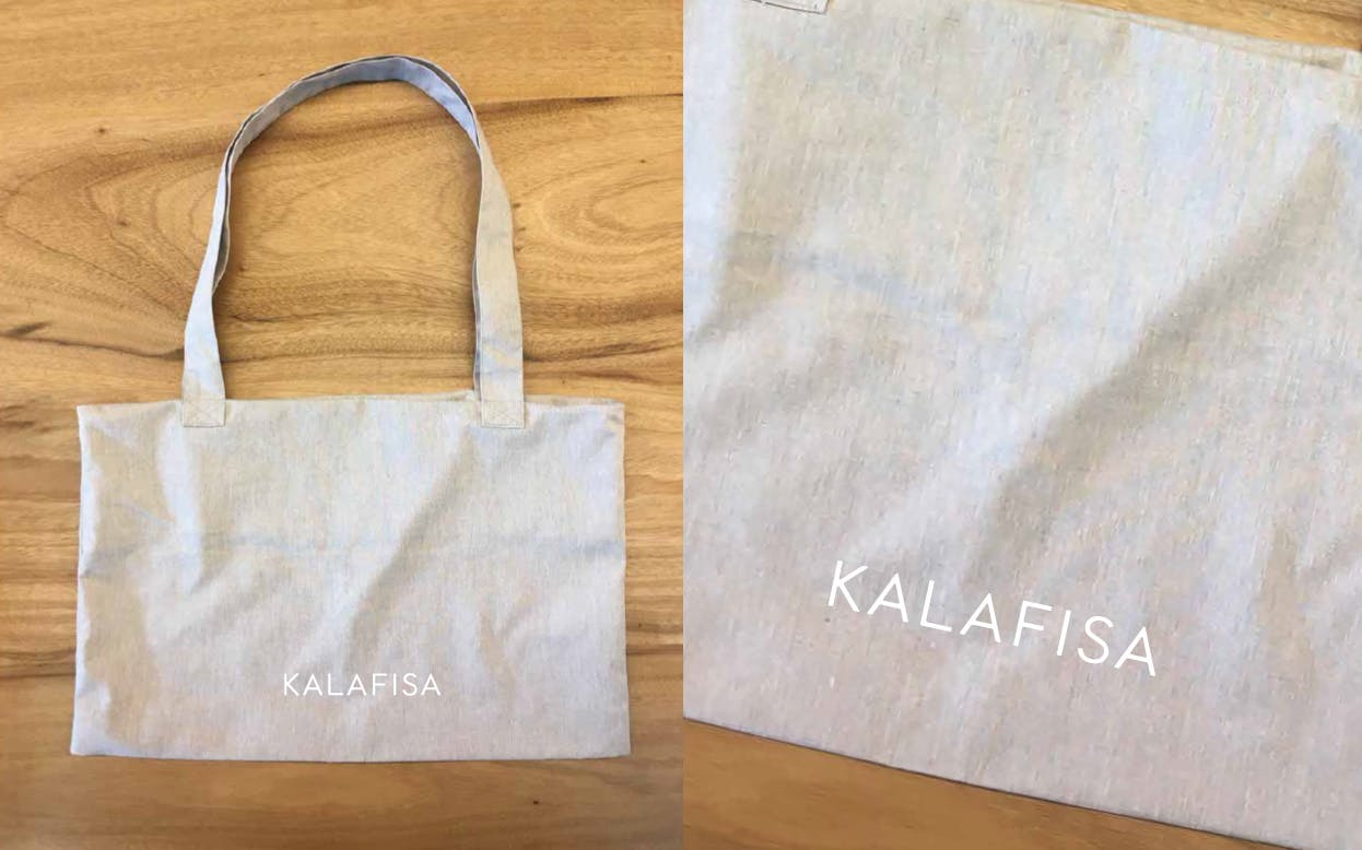KALAFISAオリジナルのショッピングバッグをお送りいたします。通常サンダルをご購入の方のみに差し上げている横長のコンパクトなショッピングバッグ。今回はその限定カラーを30名様にご用意いたしております。