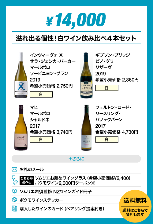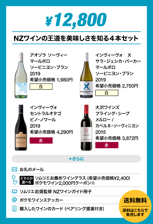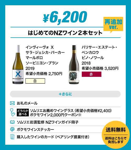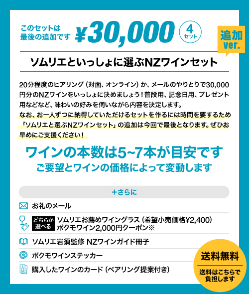 ・「はじめてのNZワインセット」完売につき、新たに「追加ver.」を設けました。