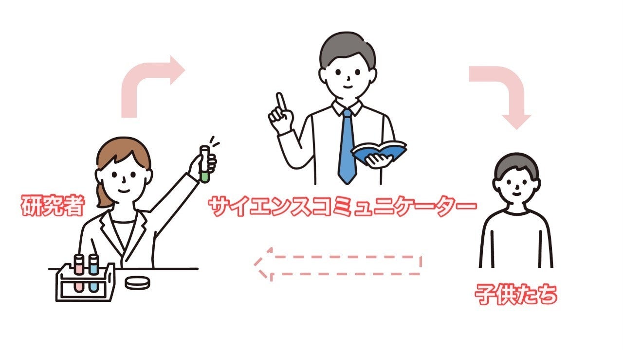 その中で「科学を社会に発信したい!」「科学と社会をつなぐことが大切だ」という強い想いを持った研究者の方々がたくさんいらっしゃることを知りました。ところが、研究者の方々は研究のプロであって、わかりやすく、面白く伝える、ということが不慣れな方も多いです。そこで、サイエンスコミュニケーターという方が研究者の代わりになってその役目を果たされています。しかし、そういった構図になっていることで、研究者ご本人の言葉を直接聞くことができる場所や、研究者の想いや生き様について知ることができる場は少なくなっています。特に、子供たちが研究者のことを知れる場所、研究者に会える場所となると、かなり限られてしまいます。