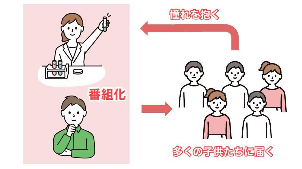 ここで問題となるのは「子供たちが研究者に憧れを抱く機会がなくなってしまう」ということです。スポーツの世界でも、プロサッカー選手やプロ野球選手に憧れを抱くことが、そのスポーツを始めるきっかけになったり、伸び悩んだ時もくじけずに続けるモチベーションになったりします。であれば、子供たちが研究者に憧れを抱くことができれば、それはその分野の勉強に前向きに取り組むきっかけになったり、勉強を継続する力になるのではないでしょうか。そう考えた私は、研究者と子供たちをつなぐ番組として「らぶラボきゅ〜」を作ることを決意し、番組制作を始めました。