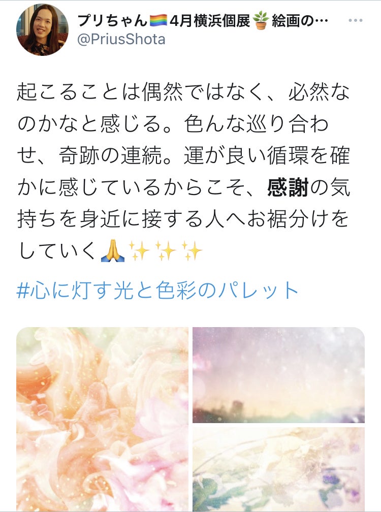 はじめまして。Prius Shotaと申します。みんなからは、”プリちゃん”と呼ばれています。私は2016年から5年間、『写真で創る、絵画・フォトアート』を創作しているアーティストです。私の作品は日常を過ごす中で美しい瞬間を撮影しては、淡い光と豊かな色彩の”魔法”を施したアート作品。創作テーマは一貫して、『心に灯す光と色彩のパレット』。見てくださる方に、「少しでも癒しや心の潤いを届けられたら」と美しい瞬間のカケラをお裾分けしてきました。